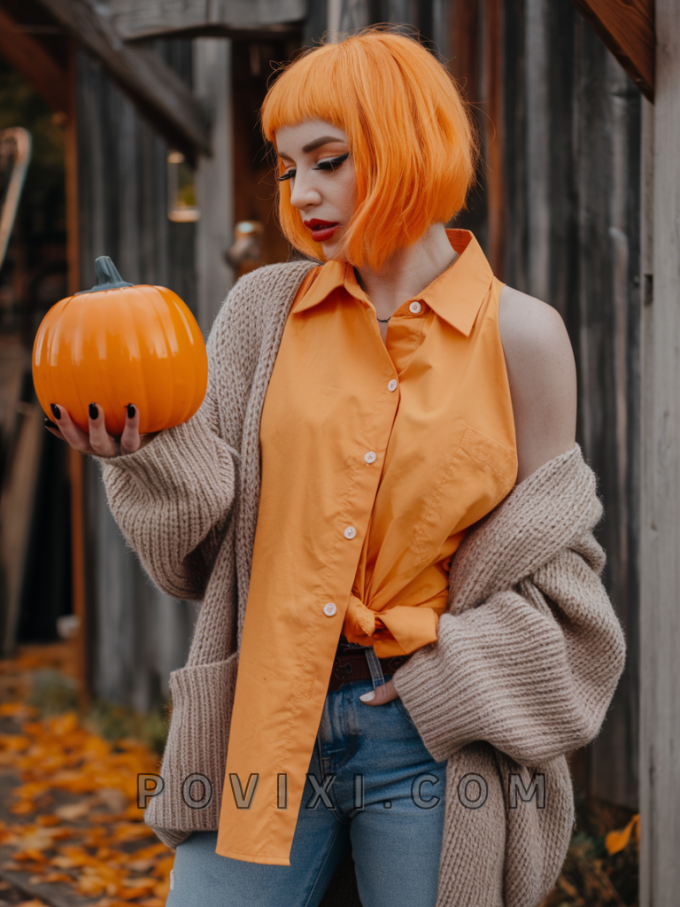Halloween isn’t complete without a bold splash of orange. This vibrant, fun color is perfect for brunettes fall 2025, adding a playful twist to traditional fall hues. It’s an eye-catching shade that works beautifully with medium or long hair lengths and suits round or oval faces.