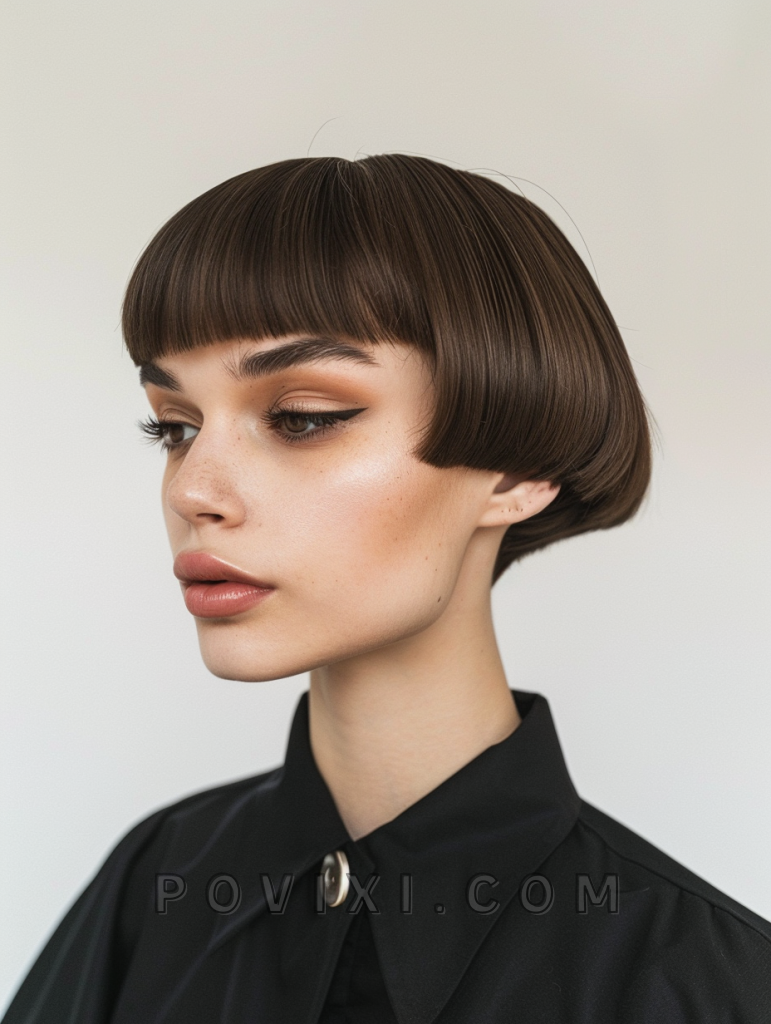 Revamping the traditional bowl cut, the modern version offers a sleek, stylish look that’s incredibly fashionable for 2024. Suitable for all face shapes, this short haircut for women emphasizes the eyes and cheekbones.