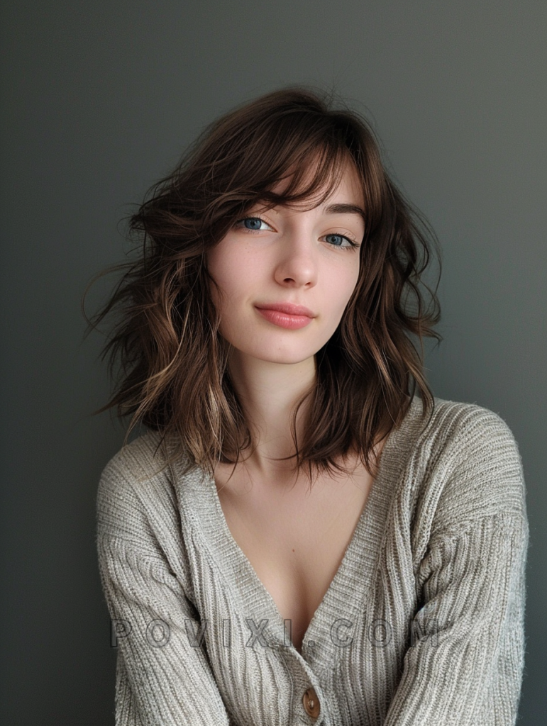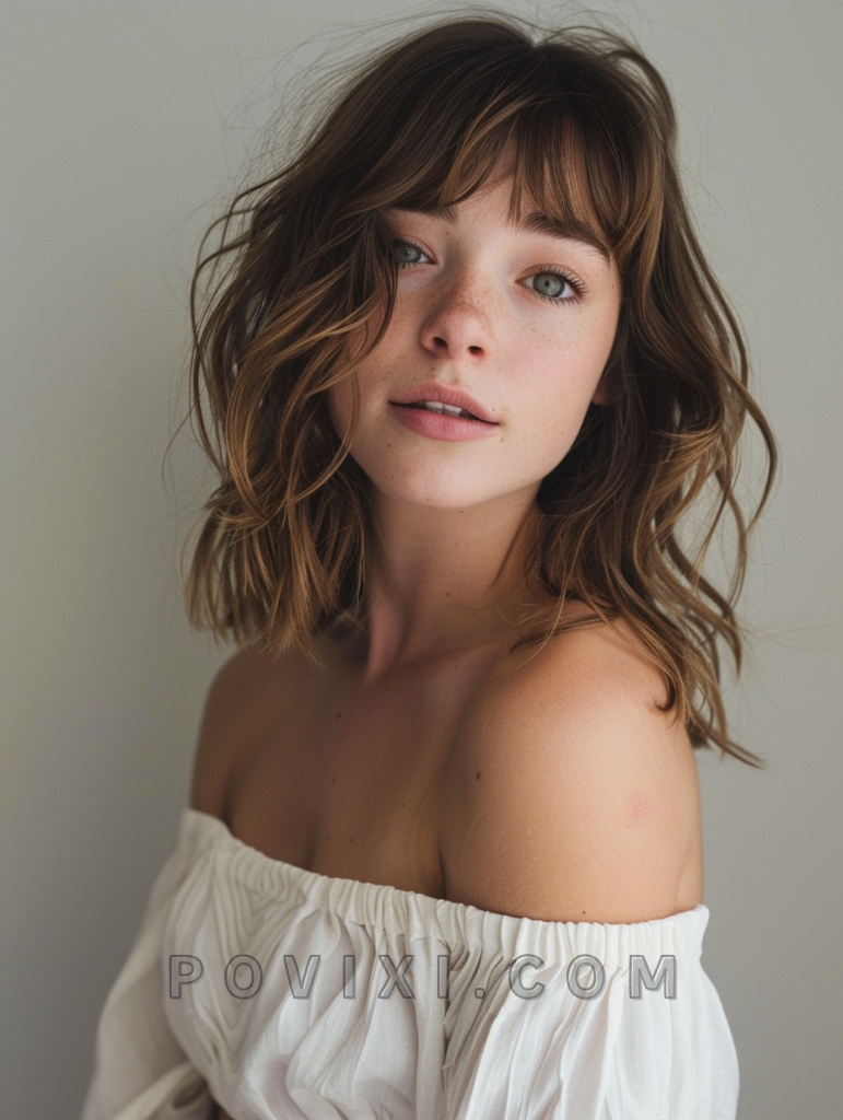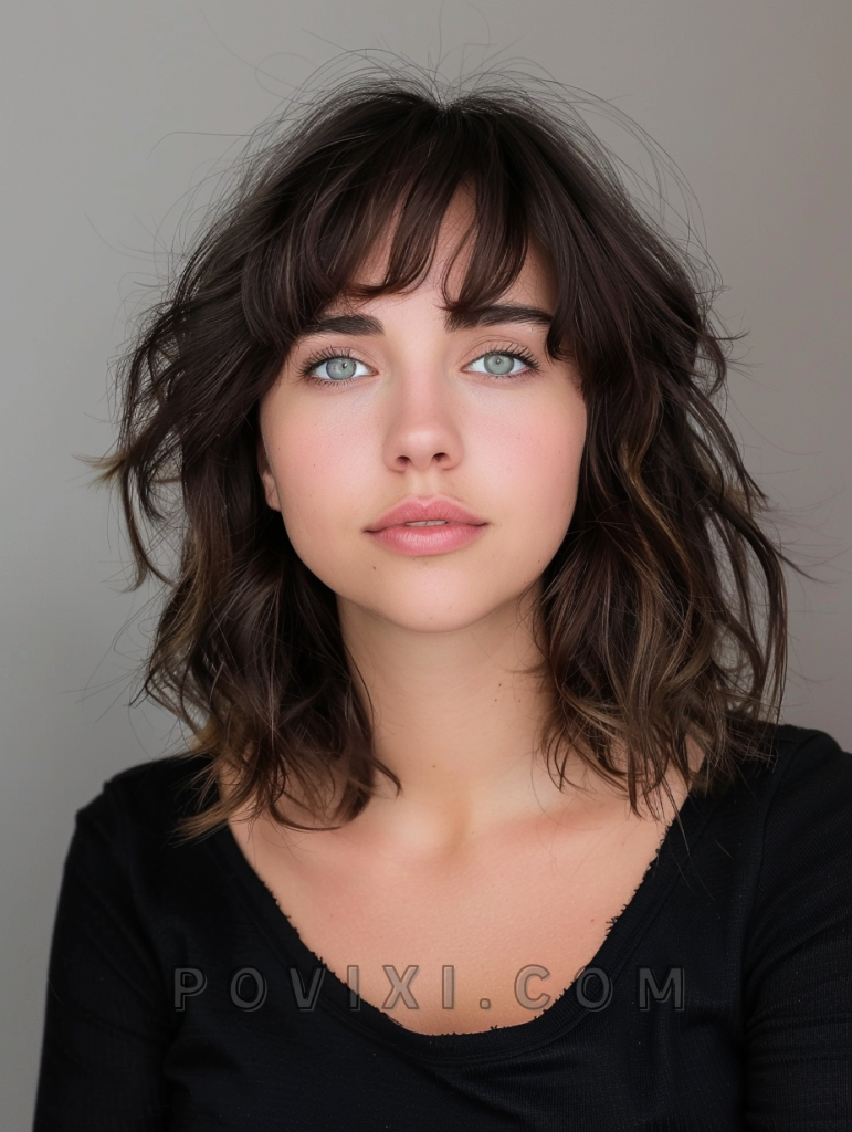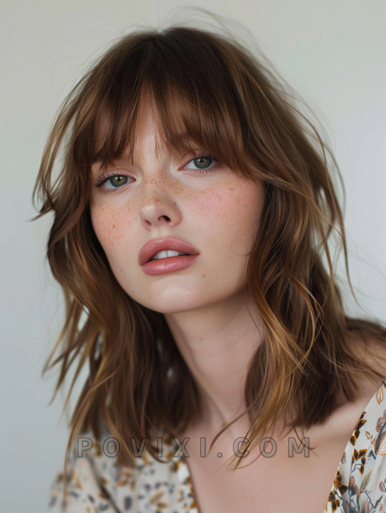 The soft fringe haircut is beautifully understated, offering a slight edge while maintaining an overall delicate look. This style works especially well for those with medium to long hair and suits heart and oval face shapes. It’s ideal for adding a subtle frame to the face, perfect for both casual and formal settings.