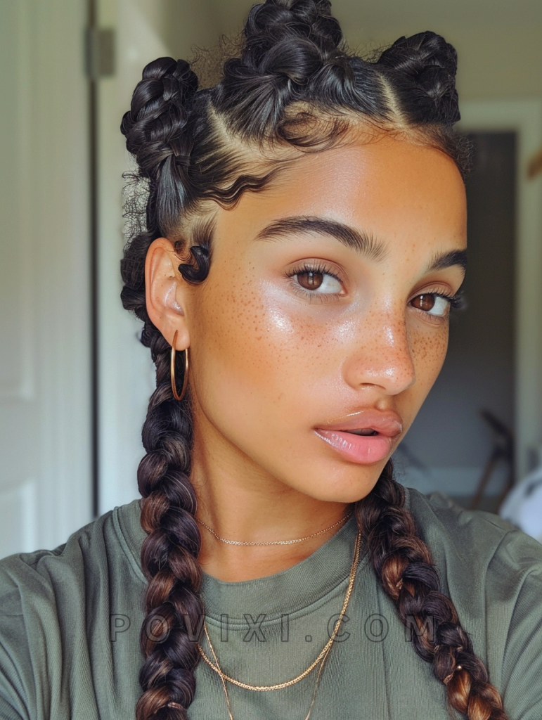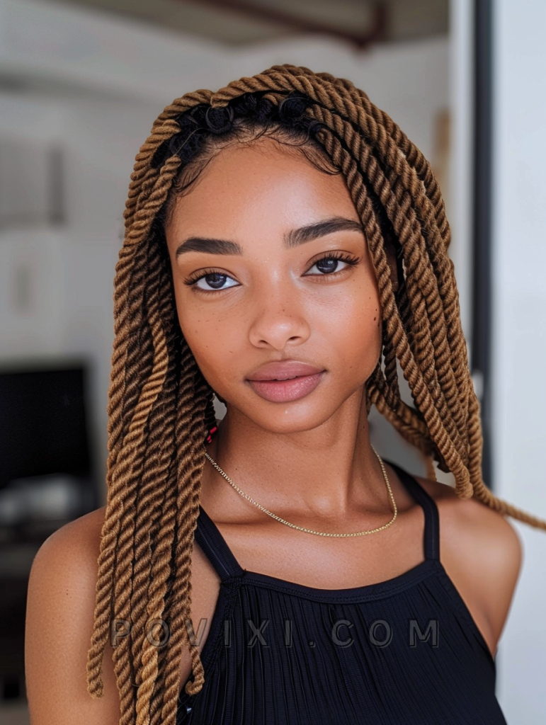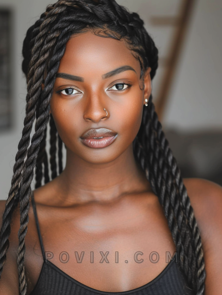 Twist braids are a stylish and easy-to-maintain hairstyle that offers both beauty and protection. This style involves twisting two sections of hair together, creating a rope-like braid. Twist braids are perfect for any occasion, from casual outings to formal events, and suit all face shapes. They are particularly great for those looking to protect their natural hair while sporting a cool and trendy look.
