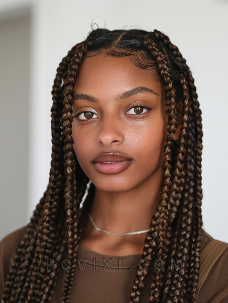 Box braids are a classic and versatile hairstyle that remains a favorite among many. These braids involve sectioning the hair into small, square-shaped parts and braiding each section from the root to the tip. Box braids are perfect for any occasion, whether it’s a casual day out or a formal event. They suit all face shapes and can be styled in numerous ways, such as buns, ponytails, or left loose for a relaxed look.