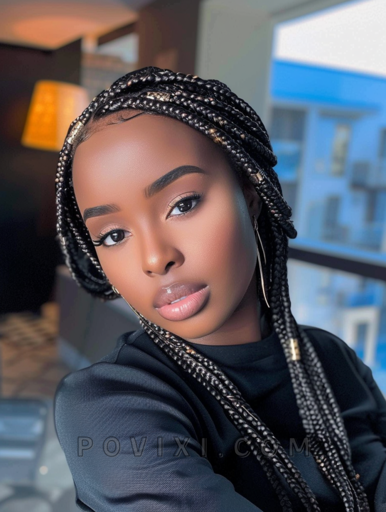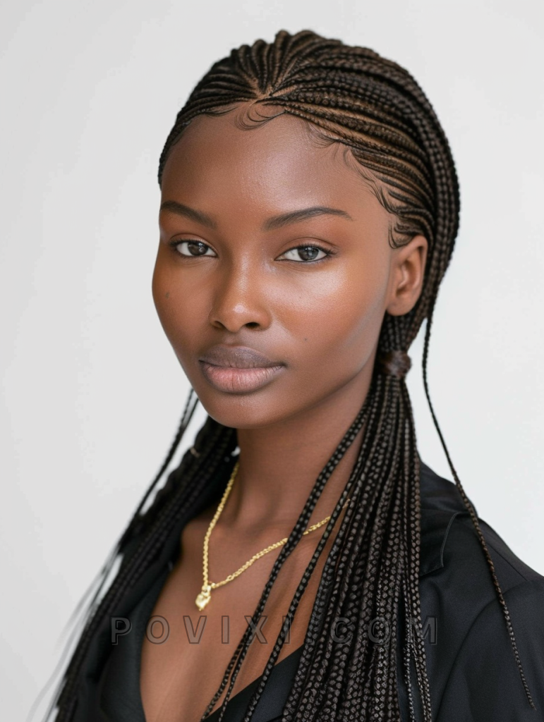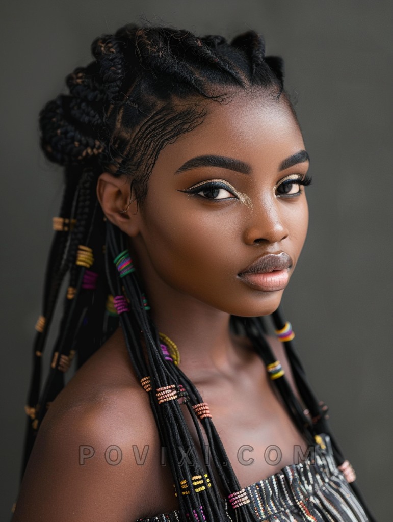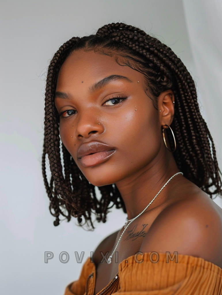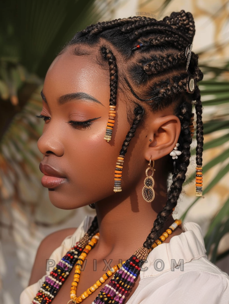 Fulani braids are a traditional African style that has gained global popularity for its unique and intricate patterns. This style typically involves braiding cornrows in the front and box braids in the back, often adorned with beads or accessories. Fulani braids are perfect for any event, from casual outings to formal gatherings, and they suit all face shapes and eye colors. The braids highlight your facial features, making them a great choice for those who want to showcase their beauty with a touch of cultural flair.