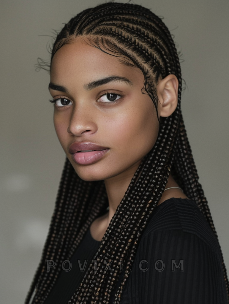 Cornrow braids are a traditional and protective hairstyle that involves braiding the hair close to the scalp in straight lines or intricate patterns. This style is perfect for any occasion and suits all face shapes. Cornrows are particularly great for those looking to protect their natural hair while sporting a sleek and stylish look.