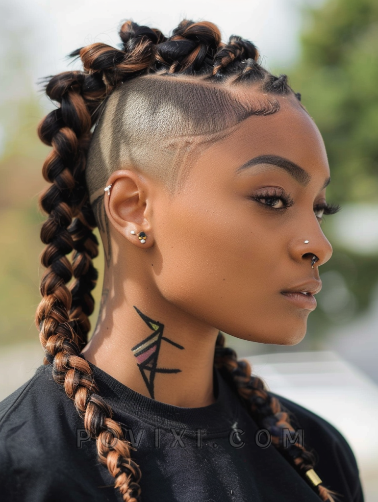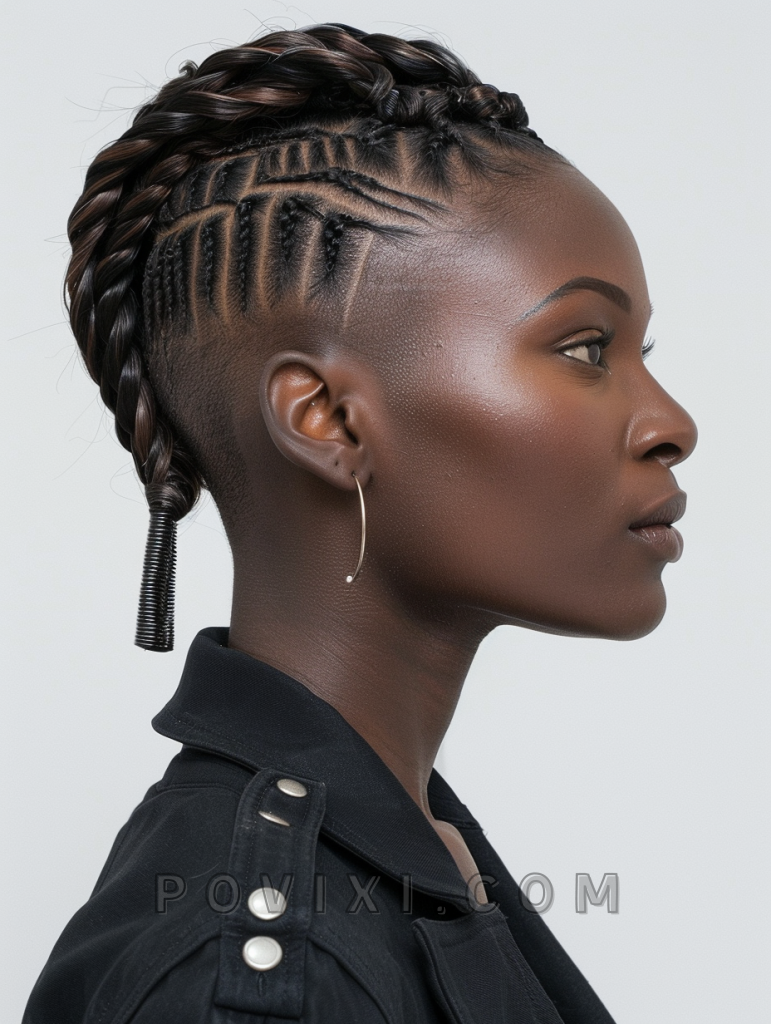 Mohawk braids are a bold and edgy hairstyle that involves braiding the hair in the center of the head, leaving the sides free or slicked back. This style is perfect for festivals, concerts, or any event where you want to make a statement. Mohawk braids suit all face shapes and add a touch of rock-and-roll to any look.
