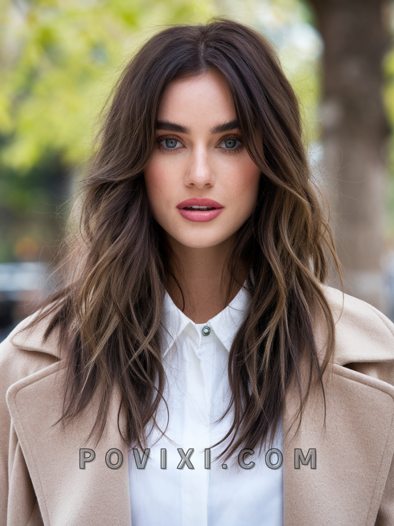 Long, textured layers are a perfect fit for oval faces, adding depth and movement to long hair. This style suits medium to long hair lengths and is ideal for women who want an effortlessly chic look that complements any occasion. With light layers framing the face, this hairstyle brings out the beauty of an oval face, especially highlighting the cheekbones. It works best for those with straight or wavy hair, creating an alluring effect for a night out or a day at the office. This look is particularly suitable for dark-haired women with small or almond-shaped eyes.