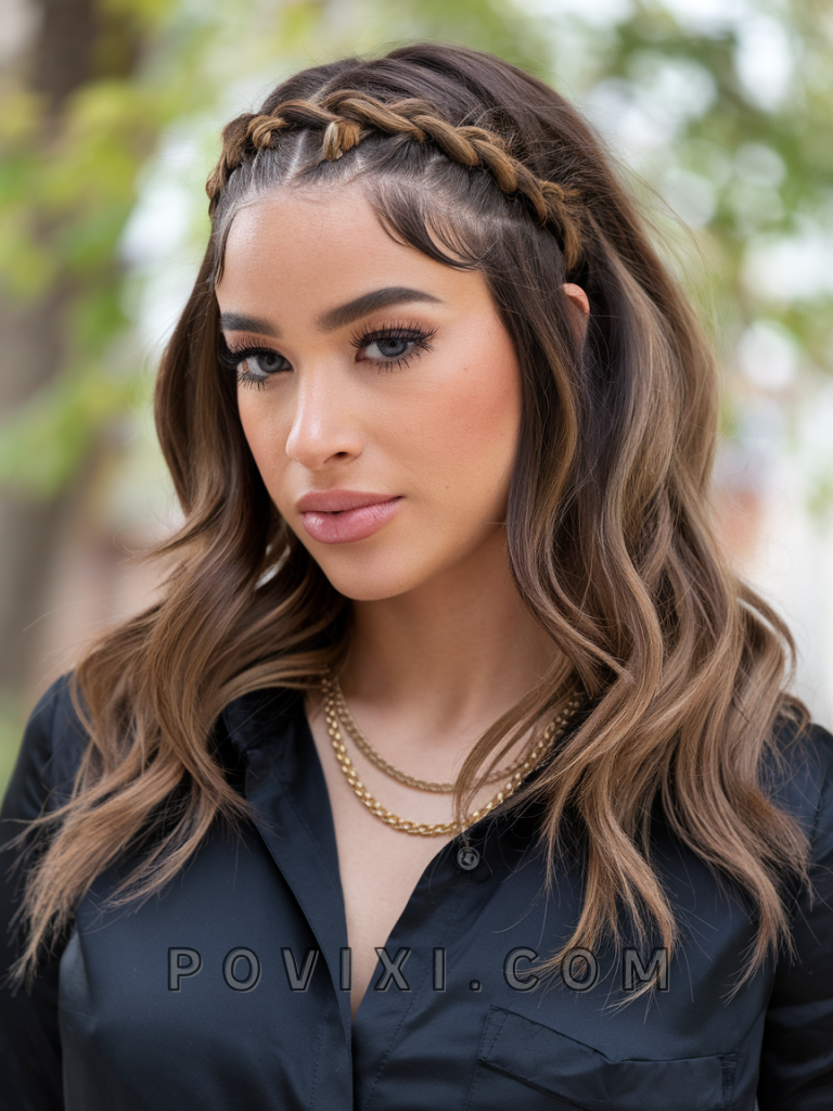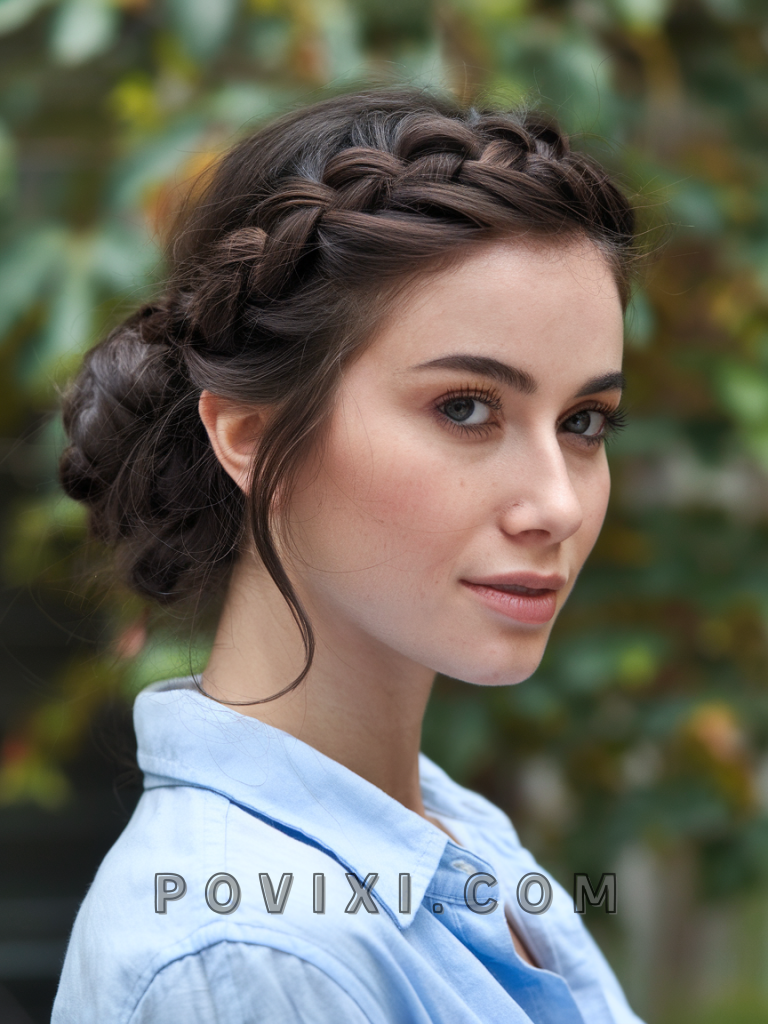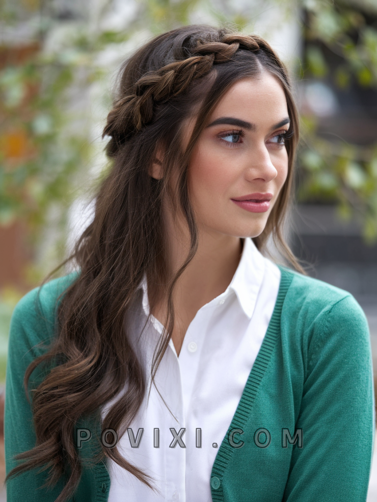 A braided crown paired with loose waves is the perfect combination of elegance and charm. It’s ideal for Christmas, prom, or a romantic wedding. This hairstyle highlights cheekbones and suits heart-shaped or oval faces beautifully.