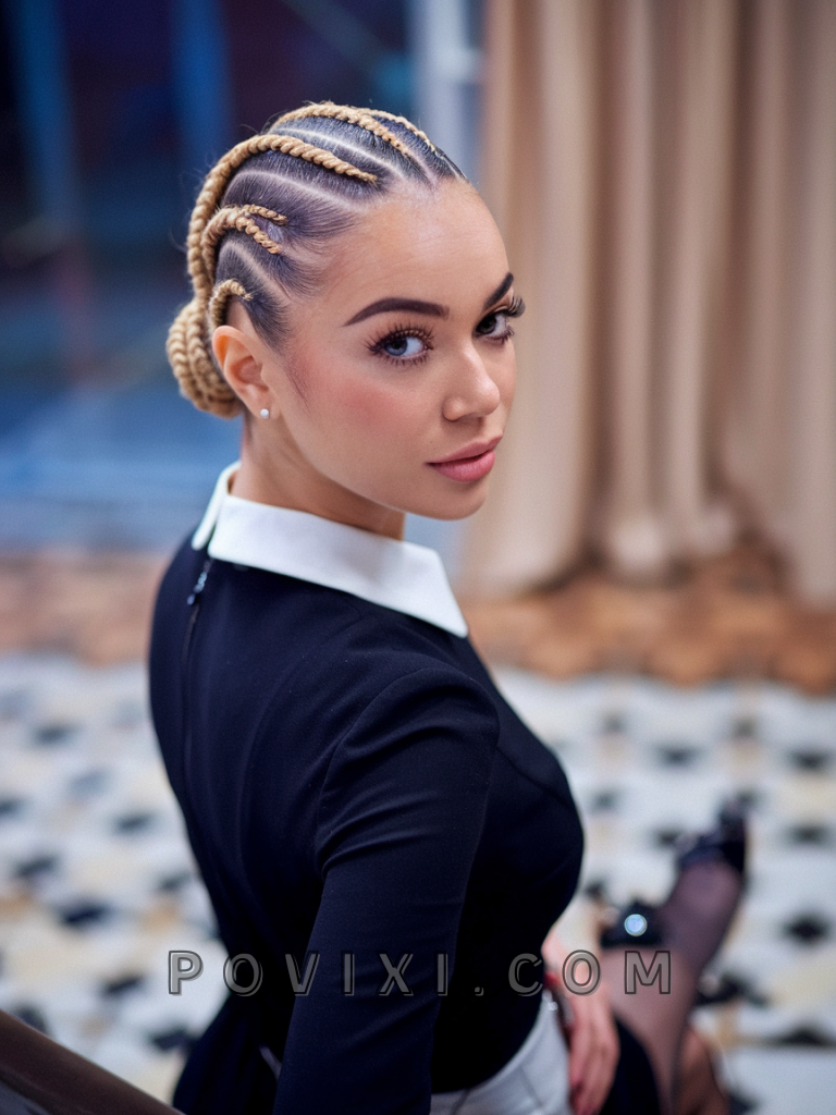 The French braid updo is a timeless yet baddie-approved style. This elegant look is ideal for a wedding, graduation, or prom, showcasing sophistication while keeping the hair neatly tucked away. It works particularly well on medium length or long hair and suits square or oval face shapes.