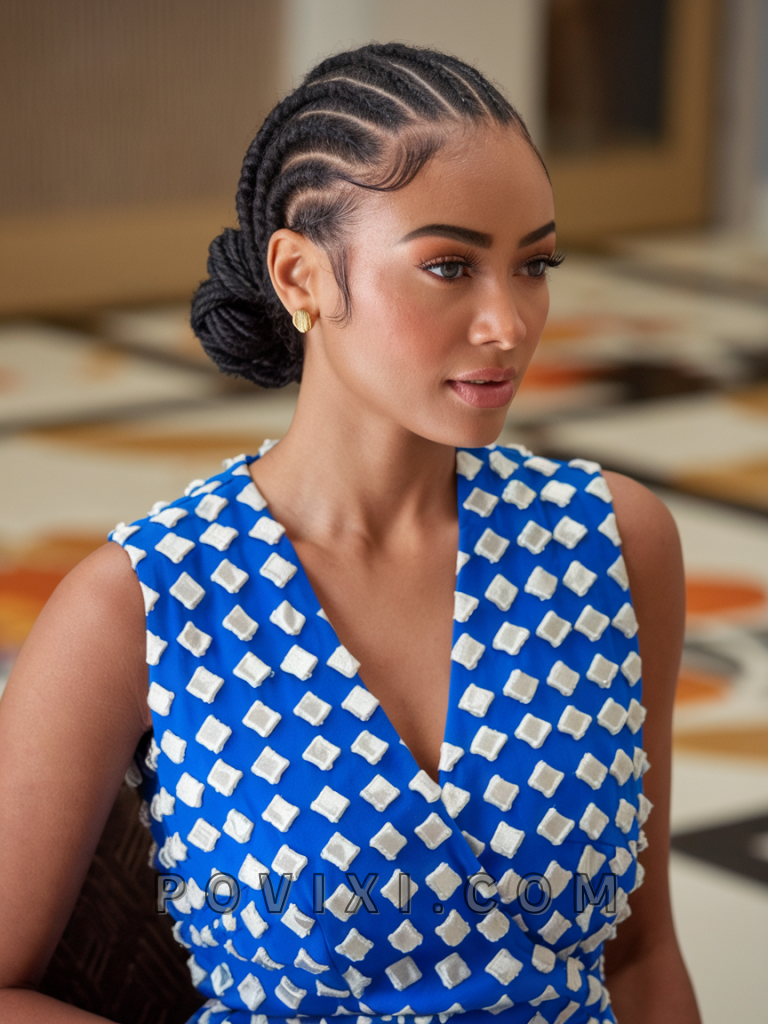 Create two French braids on either side of your head, then gather them into a low bun at the nape. Secure with bobby pins and use a hairspray like Tresemmé Extra Hold for added longevity. Weekly hair masks will ensure your strands stay strong and shiny.
