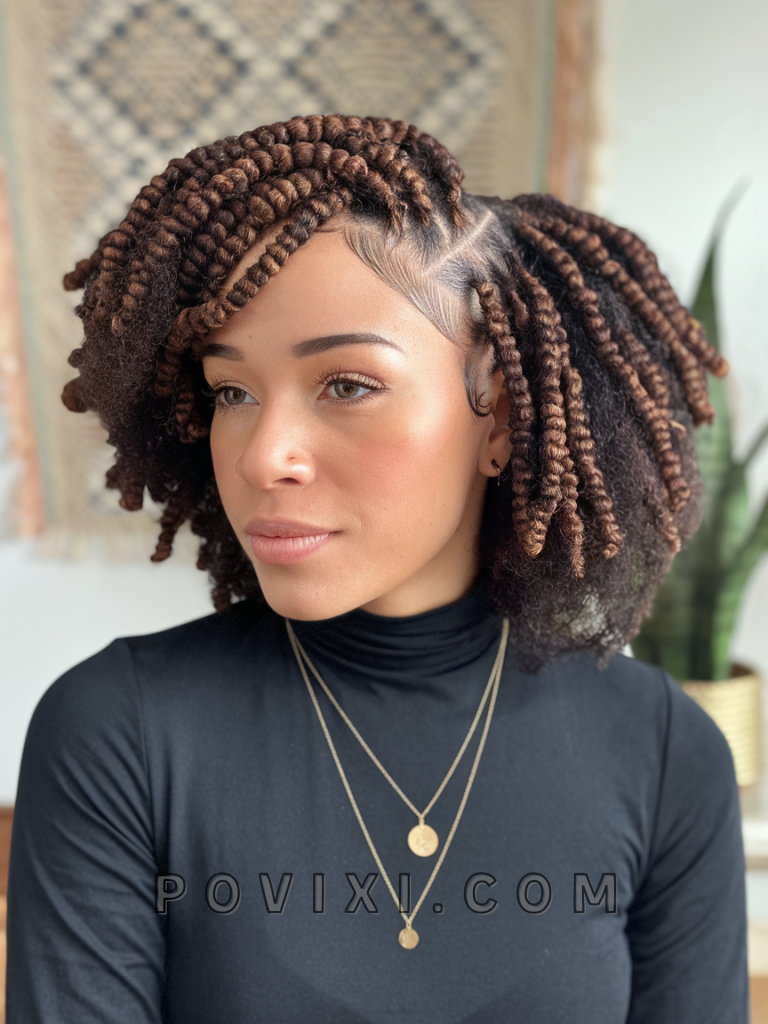 To create this style, part your hair into sections and twist each with a styling cream like Cantu Twist & Lock Gel. Secure the ends with elastics and add gold cuffs for flair. Weekly moisturizing with a leave-in conditioner will keep your twists fresh and shiny.