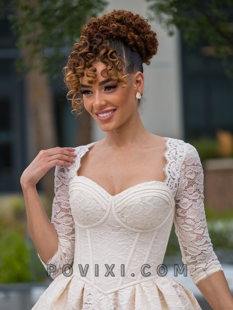 Perfect for graduation, prom, or even a wedding, the bun is slightly loose, letting the curls frame the face and add dimension. It pairs wonderfully with hoop earrings and a glowing makeup look, suiting heart-shaped or round faces.