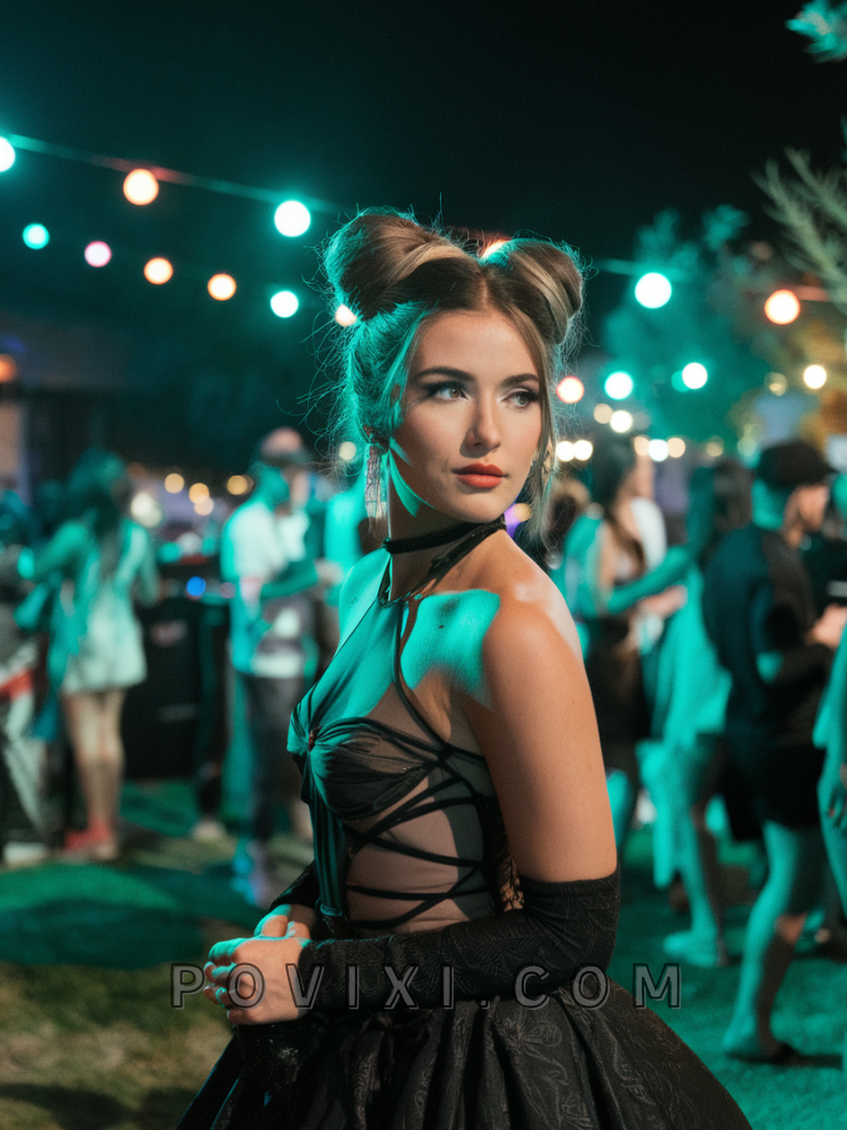 This playful style is a favorite among baddies on IG. Half-up space buns give a youthful, trendy vibe, perfect for a Halloween party or a casual beach day. This look suits curly hair or straight hair and works well with all hair lengths, especially medium length.