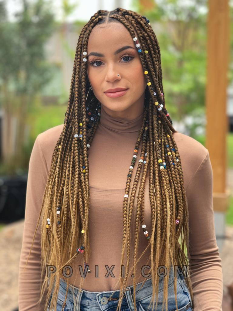 Box braids remain a go-to for their versatility and style. Adding beads to the ends gives them a playful yet sophisticated edge. This braid style is perfect for work, school, or even a beach day. It suits all face shapes and works well with 4c natural hair textures.