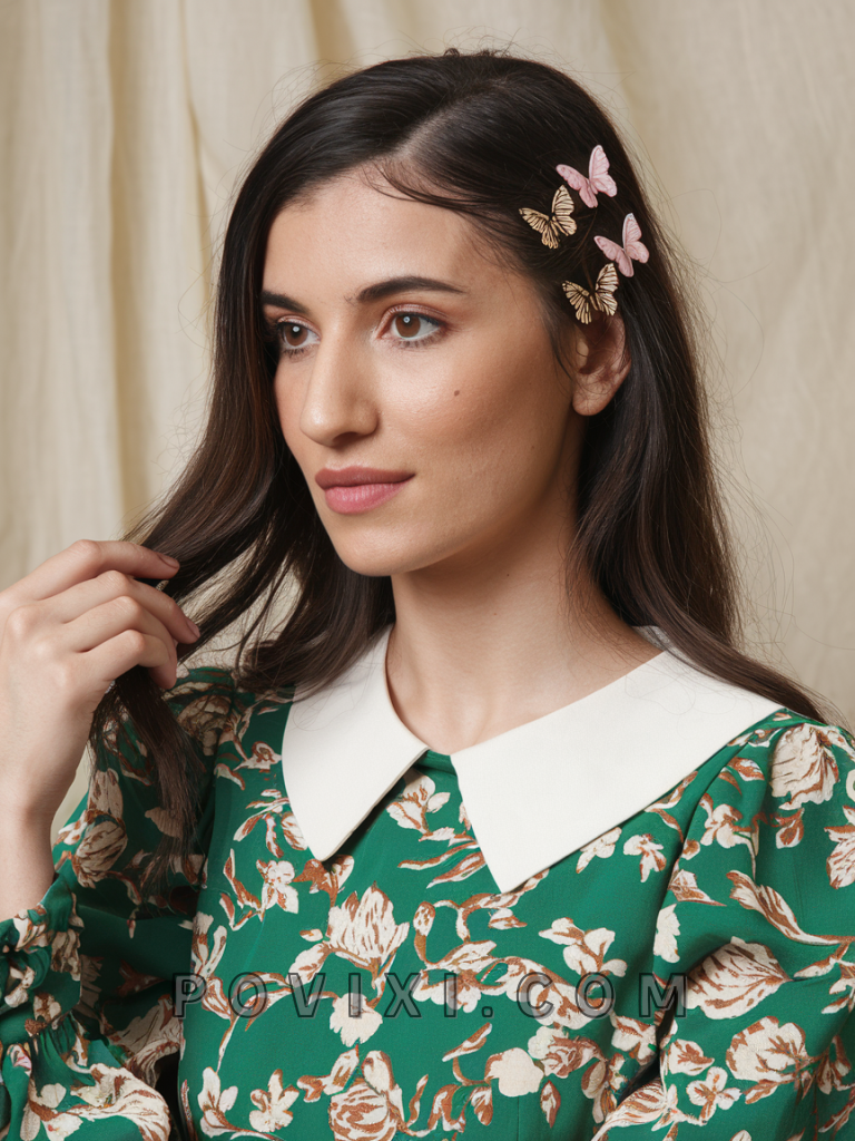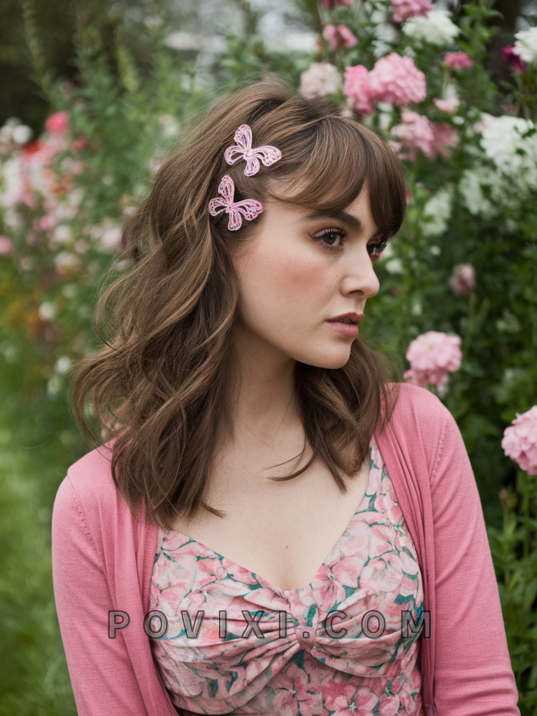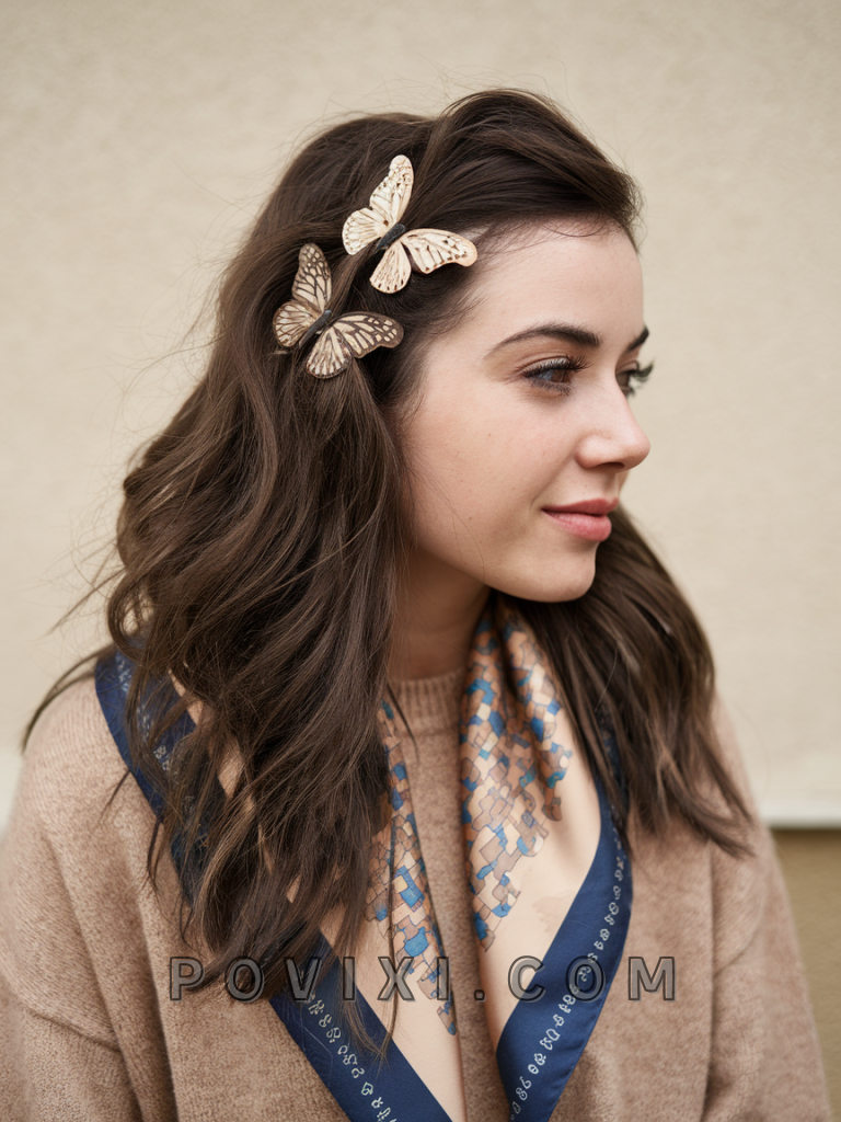 Butterfly clips bring a fun and Indie flair to a side-swept look, perfect for casual days or festivals. This style suits short and medium-length hair and looks fantastic with wavy or curly textures.