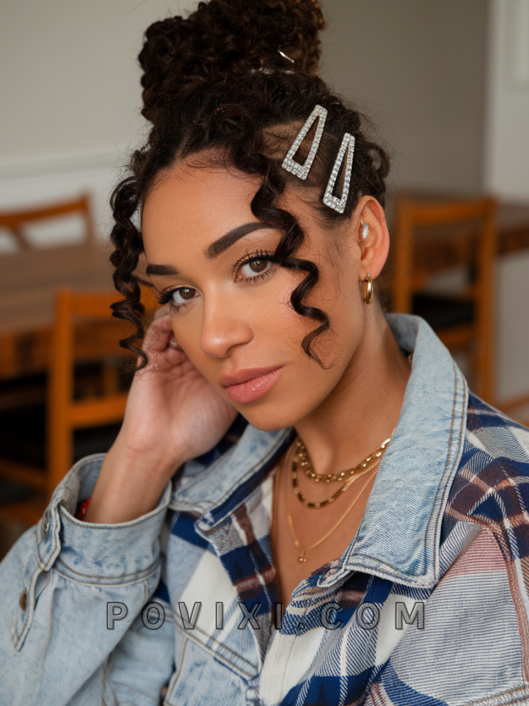 Bring back the 90s with side-swept layers adorned with butterfly clips. This playful style is perfect for casual days, especially for those with short curly or medium hair. Butterfly clips add a fun pop of color, making this look ideal for younger audiences or anyone embracing a vintage aesthetic.
