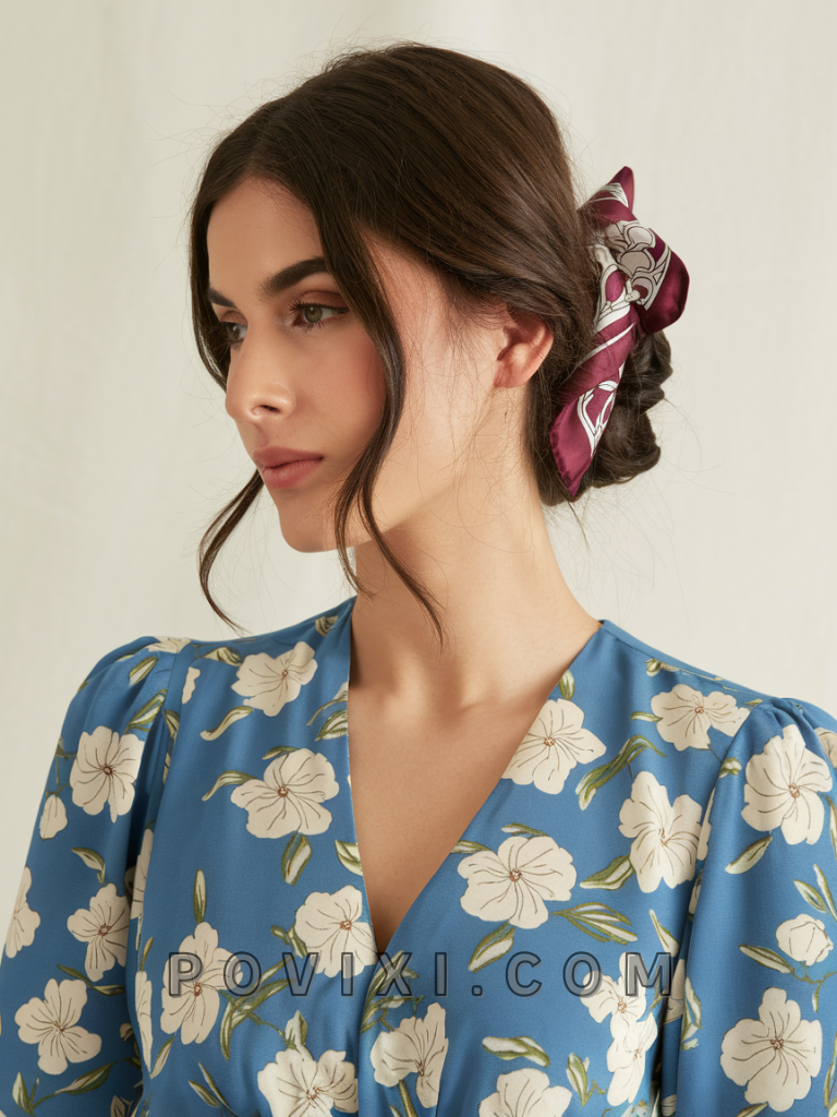 Adding a silk scarf clip to a bun introduces a touch of sophistication and color, perfect for sunny days, beach outings, or casual lunches. This look is ideal for short hair or shoulder-length styles and flatters most face shapes. Silk scarf clips come in various patterns, making them a fun way to add a splash of color to simple hairstyles.