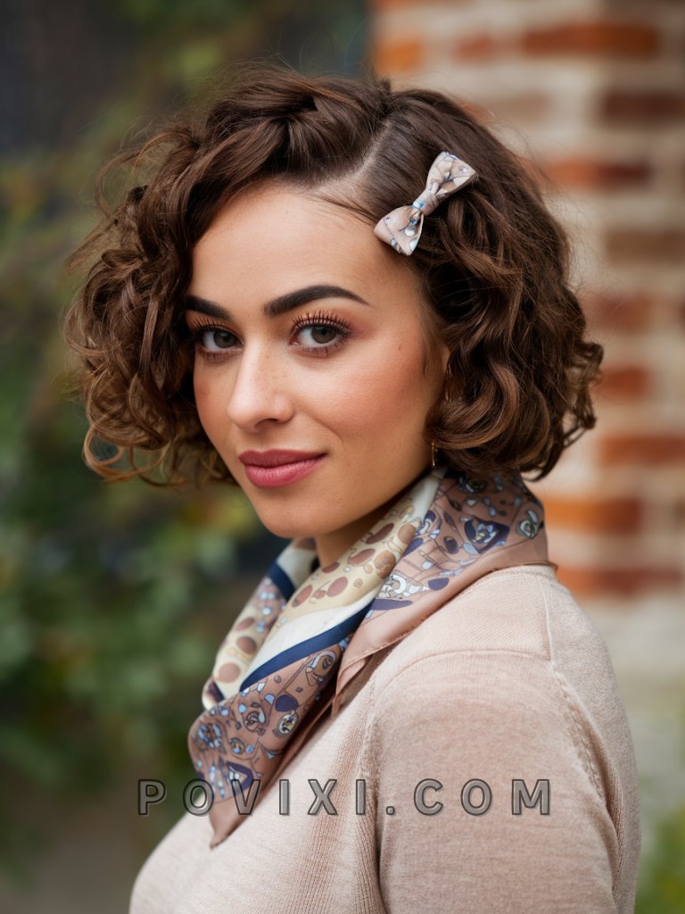 Mini bow clips are a cute addition to a curly bob haircut, making it ideal for casual gatherings or weekend outings. This style is great for short curly hair or chin-length hair and suits round and square faces. Bow clips in contrasting colors can create a playful, indie vibe.