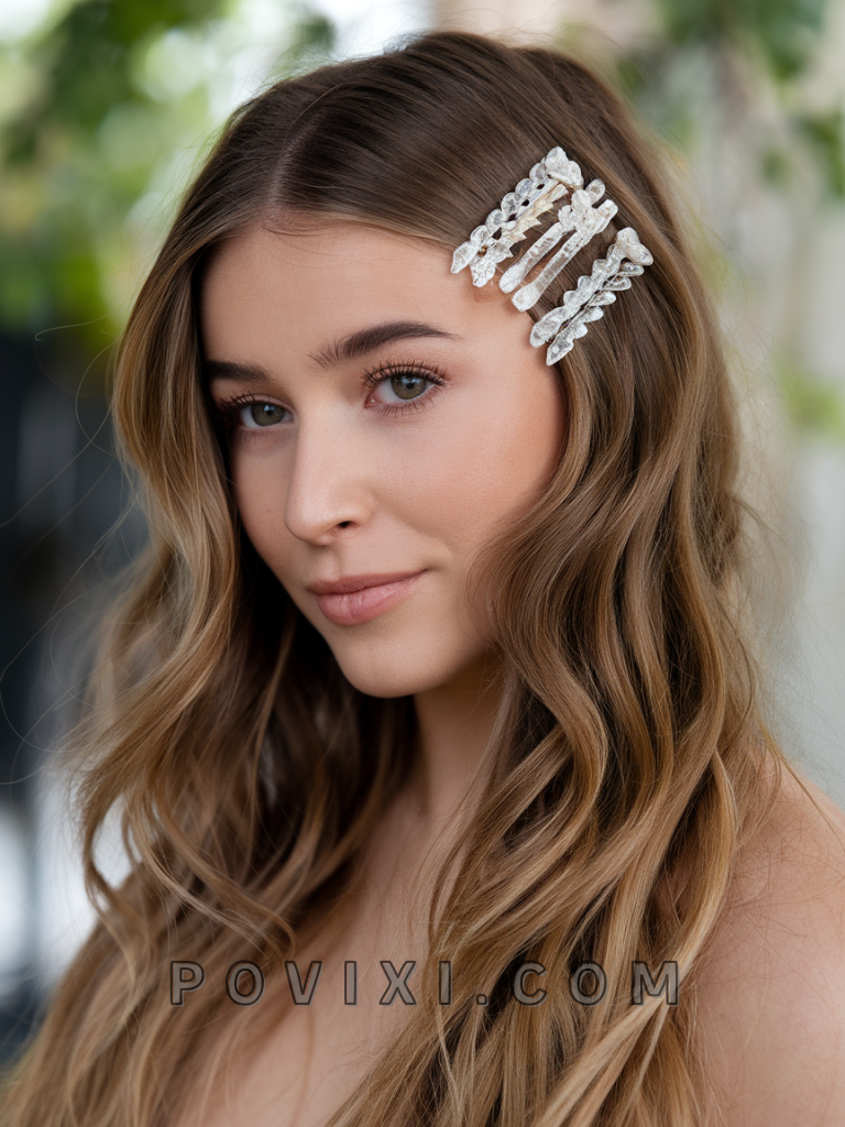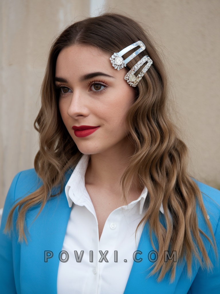 For an elegant, effortless look, loose waves paired with crystal clips add a hint of sparkle to any occasion, from brunch with friends to evening dates. This style works well with medium length and long hair, enhancing wavy or curly hair textures. Crystal clips are especially flattering on blondes and brunettes, as the shimmer contrasts beautifully with lighter or darker shades.