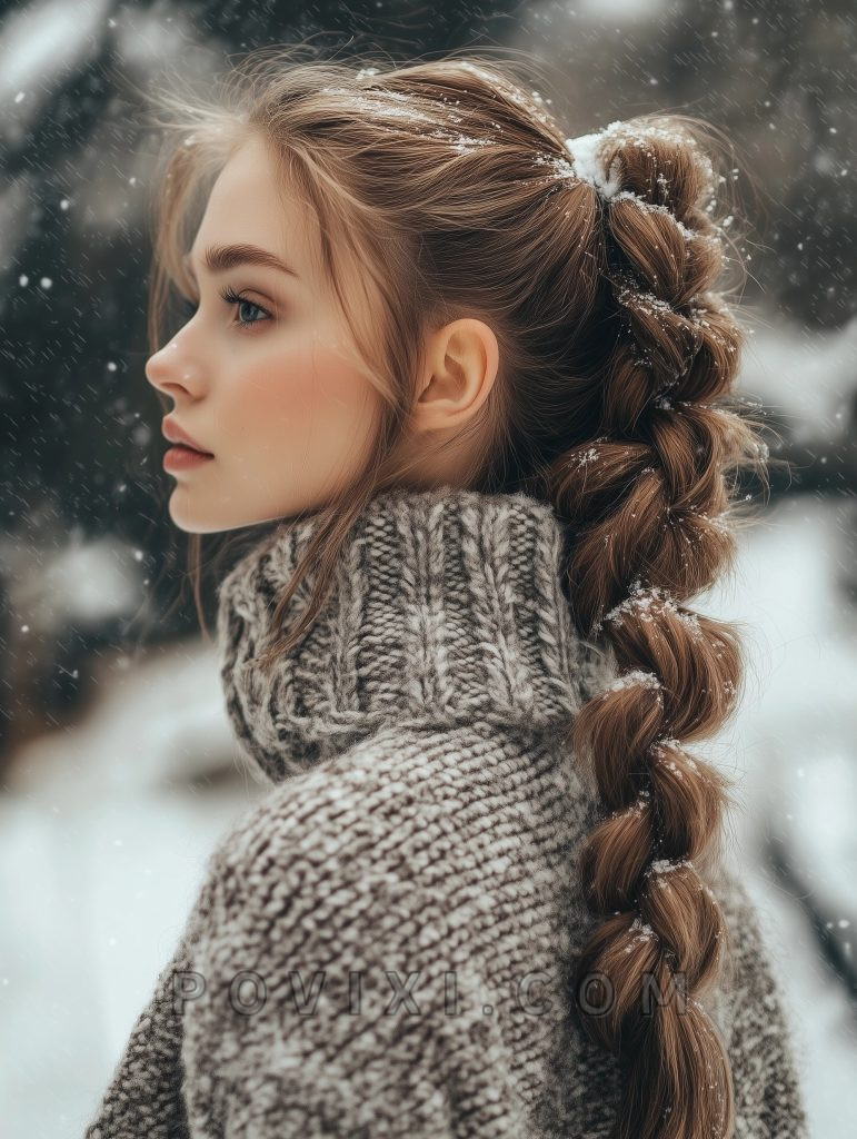 For a more intricate and textured look, the fishtail braid is a fantastic winter hairstyle. It’s a unique twist on the traditional braid, giving your hair a woven, almost basket-like appearance. The fishtail braid works beautifully for long hair and looks great with oval or heart-shaped faces. This style is perfect for winter weddings, holiday parties, or even just cozy days at home.