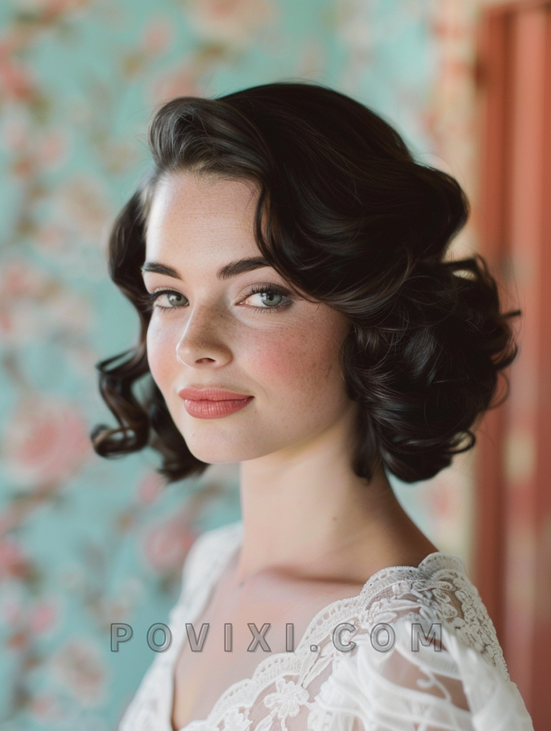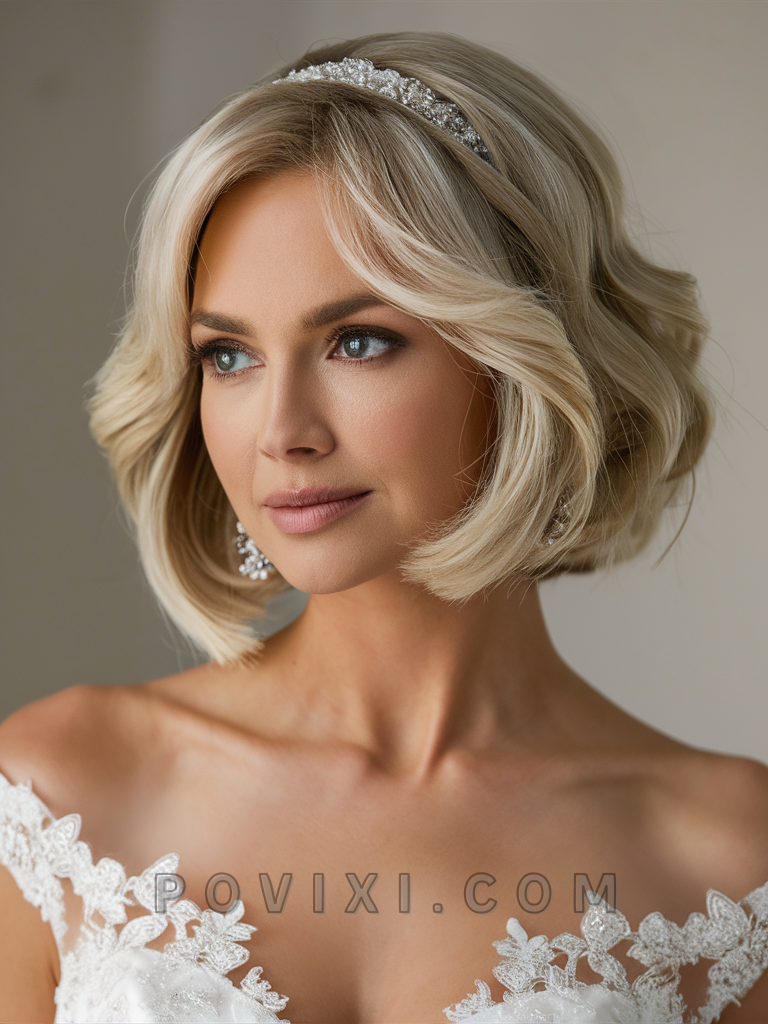 A Chic Bob with Soft Waves is an excellent option for bridesmaids or guests with short hair. This style suits those with oval or square faces and works well for semi-formal to formal weddings.