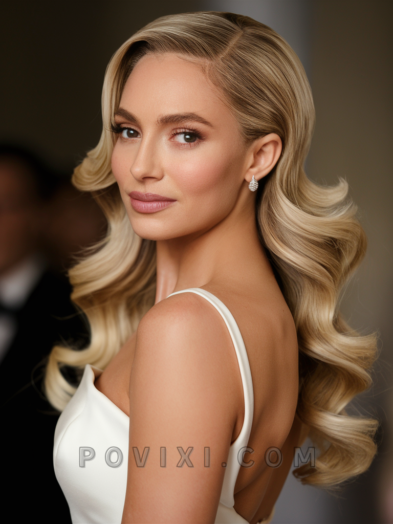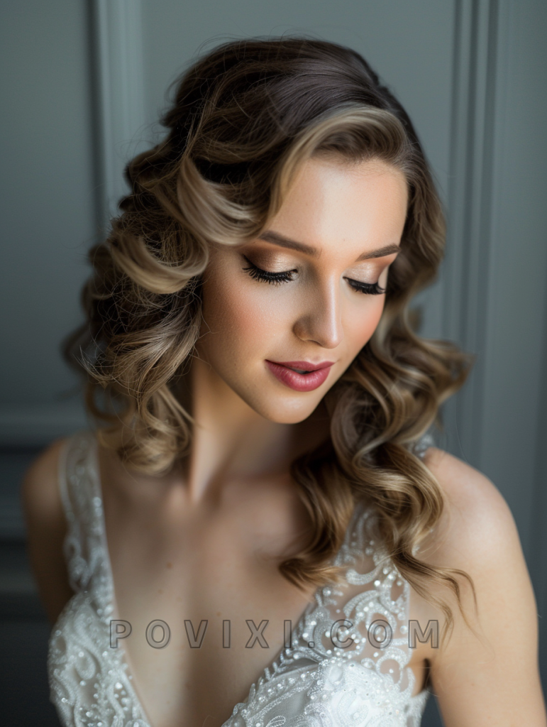 Elegant Side Swept Curls for the Sophisticated Guest