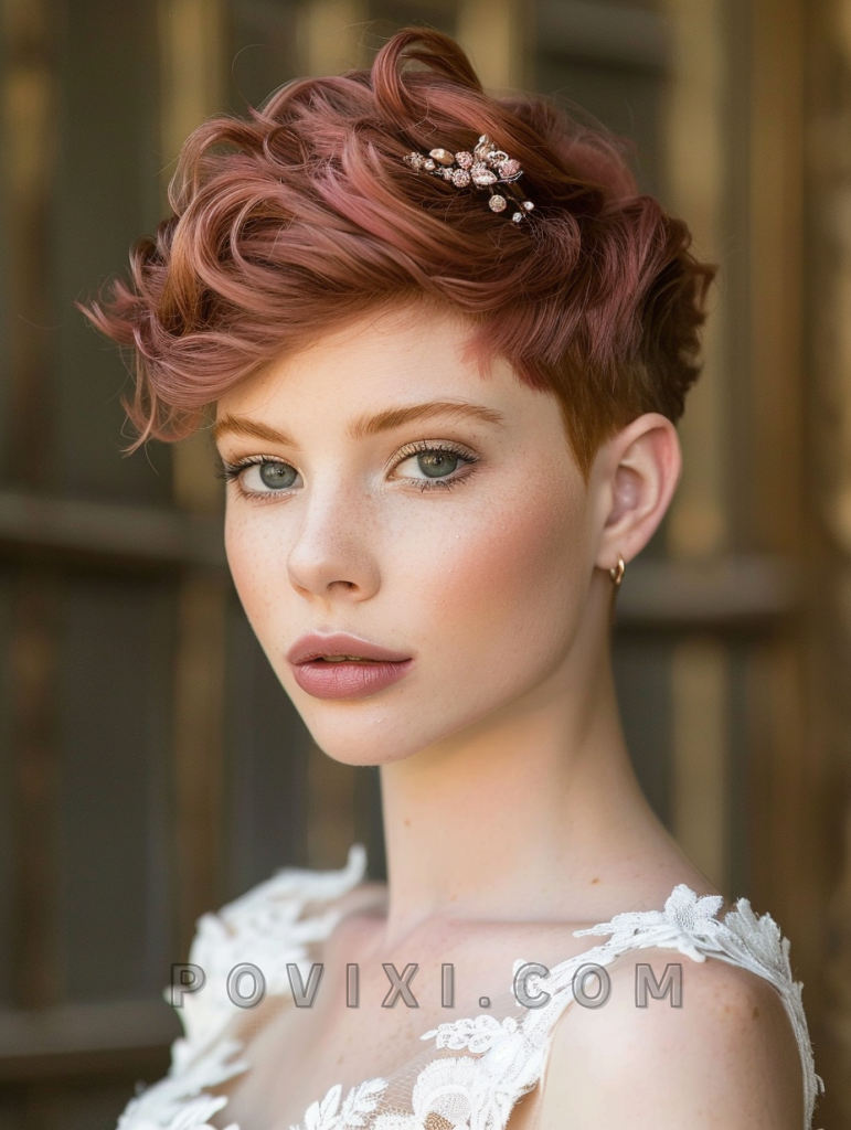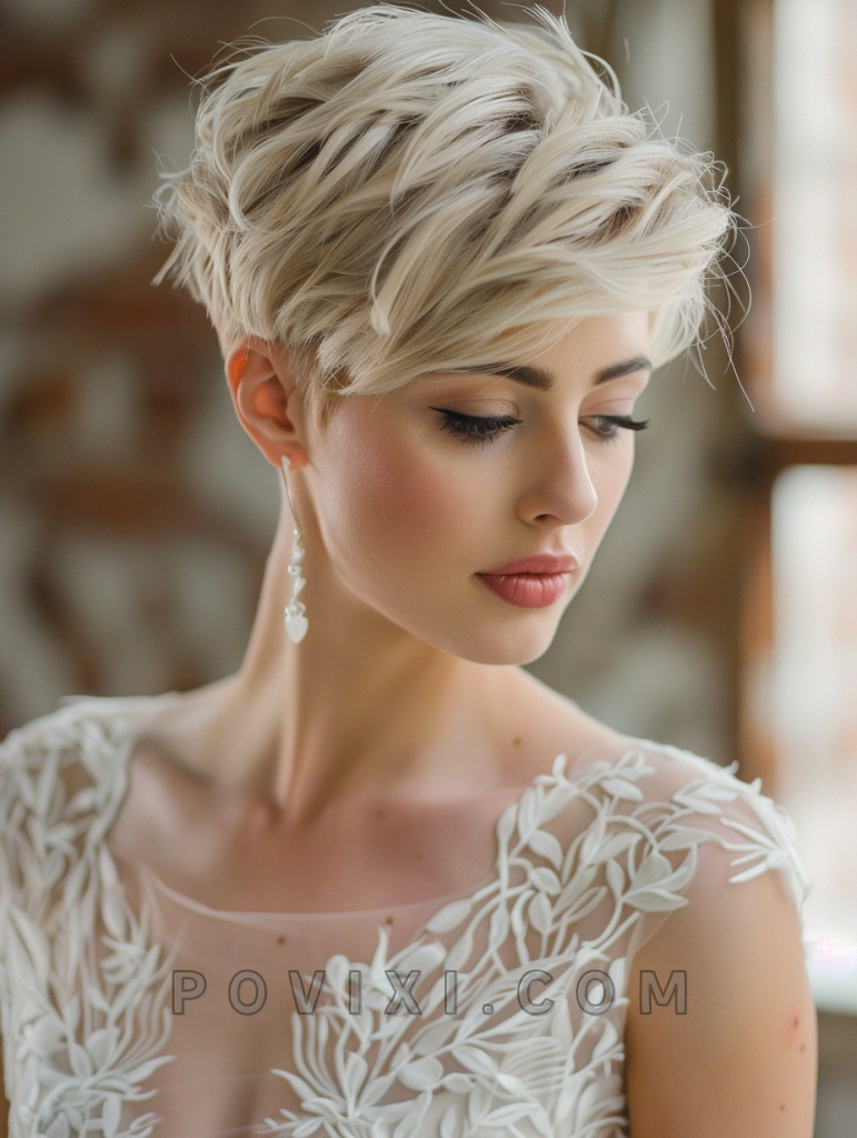 A Playful Pixie Cut is perfect for the bold guest who wants to make a statement with short hair. This style suits all face shapes and brings a modern twist to any wedding, especially those with a contemporary theme.