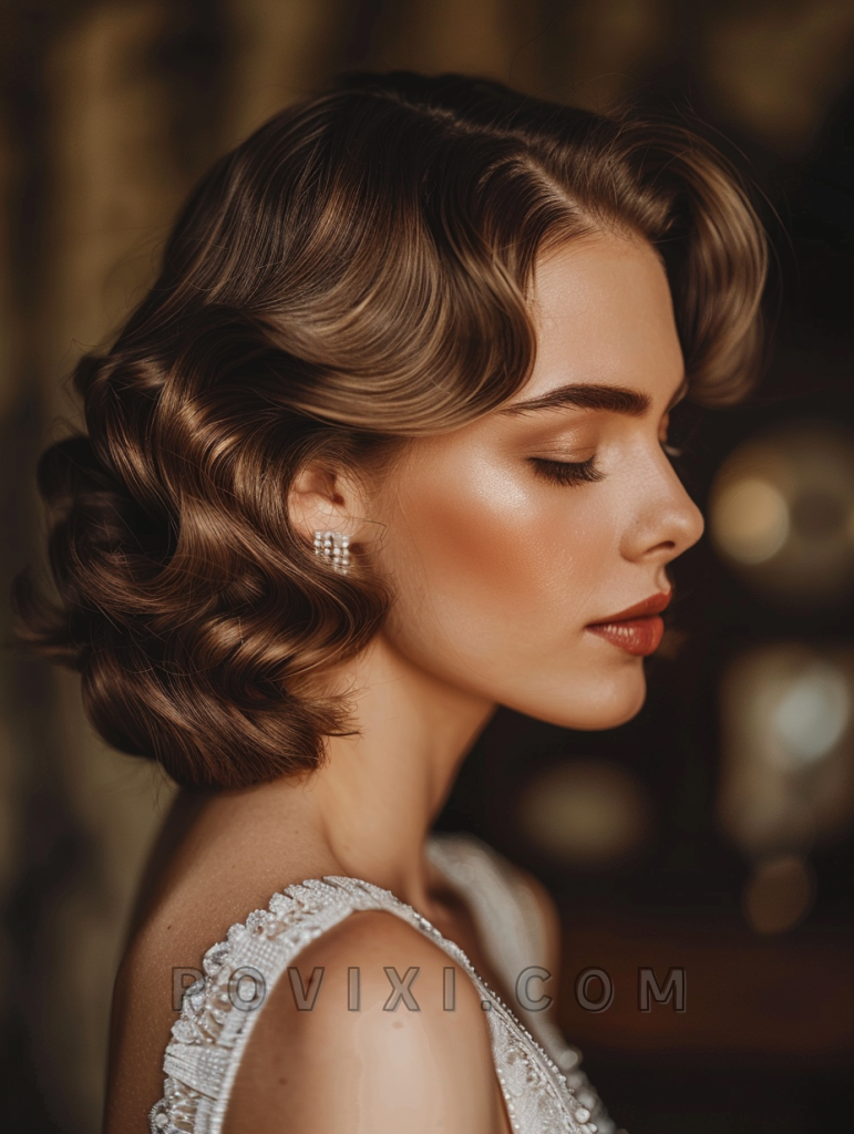 For those with short hair, the Vintage-Inspired Finger Wave brings back the glamour of the 1920s, making it a perfect match for thematic or classic weddings. This style suits all face shapes but particularly enhances features on oval and rectangular faces.