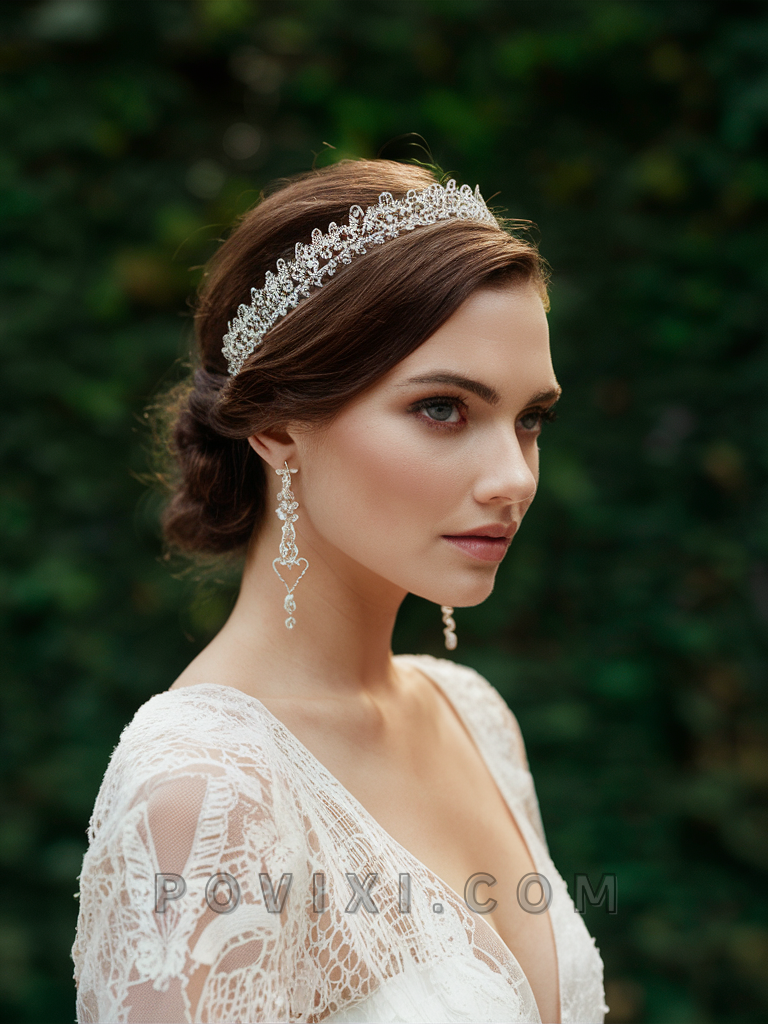 Lastly, the Regal Braided Updo adorned with jeweled accessories is a magnificent choice for any bride or bridesmaid. This hairstyle is best for those with long hair and complements all face shapes, especially with a touch of sparkle from the accessories.