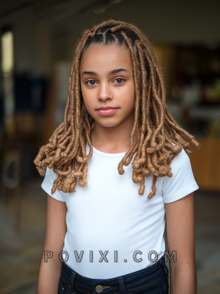 For younger loc enthusiasts, curly locs for school provide a playful yet structured look. This style involves adding curls to short locs, making it ideal for students or those looking for a youthful aesthetic. It suits square faces and highlights the brightness of green or blue eyes.