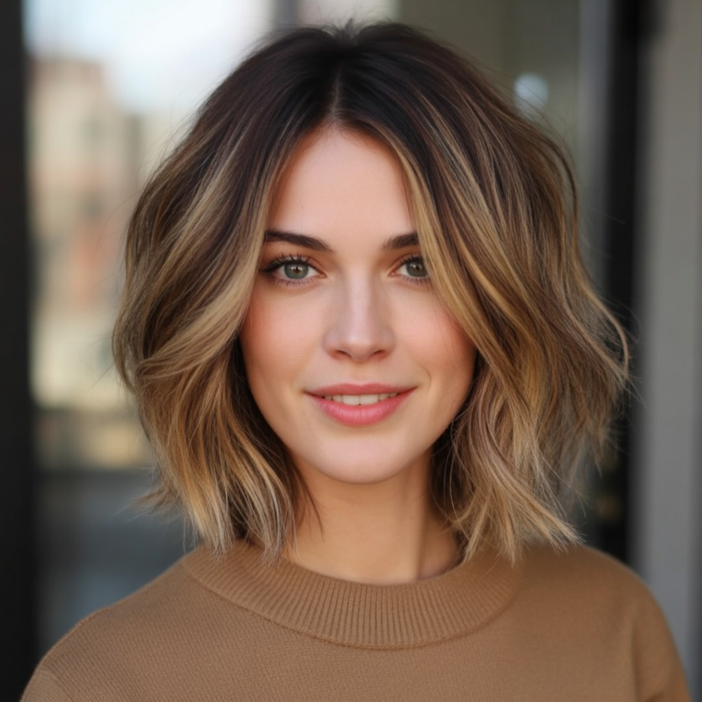Energetic, young, and slightly rebellious, this hairstyle brings together a carefree blond money slice with faintly melted brunette balayage. The contrast immediately lightens up the face and you look vacation-fresh in the dead of winter 2025. It is statement without being too loud- just the right middle ground ladies need in between wanting that pop of brightness and yet still loving their brunette depth.