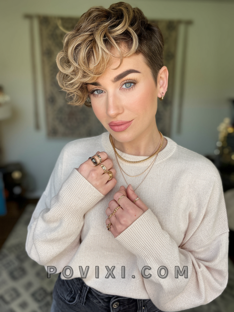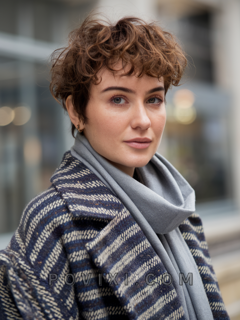 Curly Pixie Cut with Side-Swept Bangs