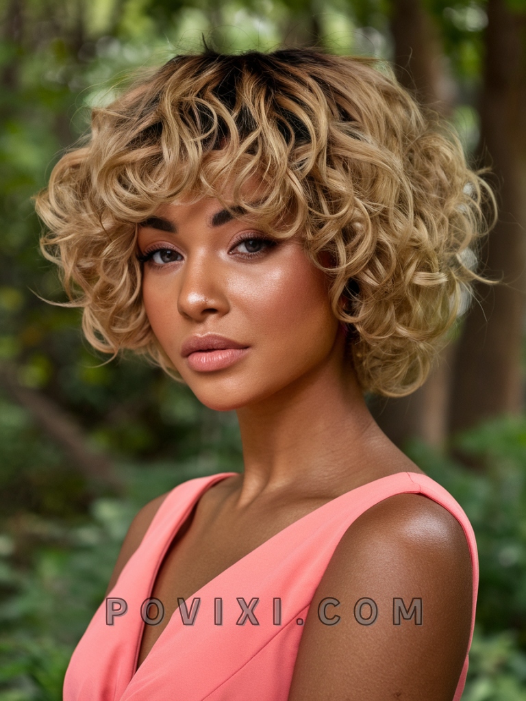 Short Curly Bob with Choppy Bangs