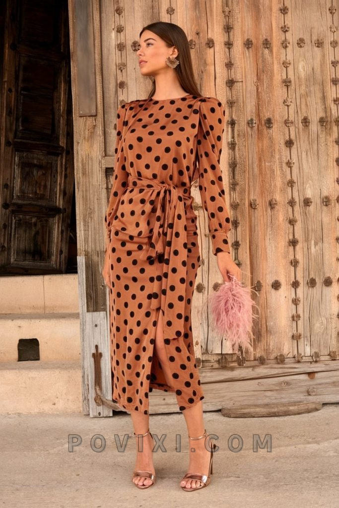 Opt for a vintage vibe with this polka dot dress that combines nostalgia with contemporary fashion. The belted waist accentuates the figure, making it an excellent choice for curvy or plus size guests. This dress blends playful charm with sophistication, making it ideal for a memorable summer wedding look.