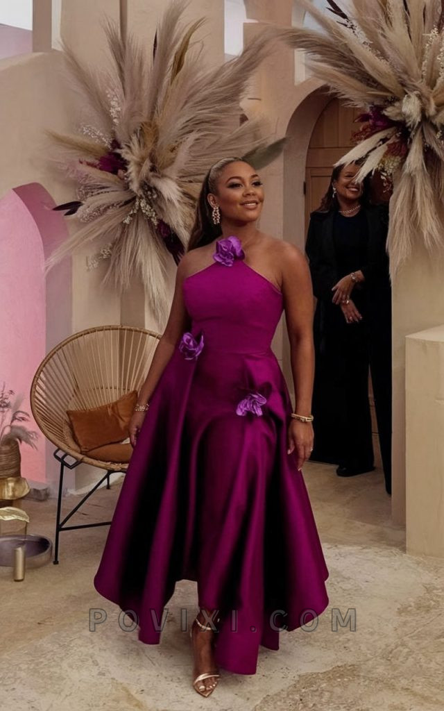 For a wedding that calls for women formal attire, a rich, satin magenta dress is an undeniable showstopper. The asymmetrical neckline and floral appliqués add a romantic touch, while the full skirt ensures elegance and movement. This dress is ideal for black-tie weddings or receptions held in lavish indoor venues. Enhance the look with metallic or nude heels, delicate jewelry, and a sleek high ponytail for a refined finish. The luminous fabric of the dress complements both daytime and evening lighting, ensuring that you remain the epitome of glamour throughout the event.