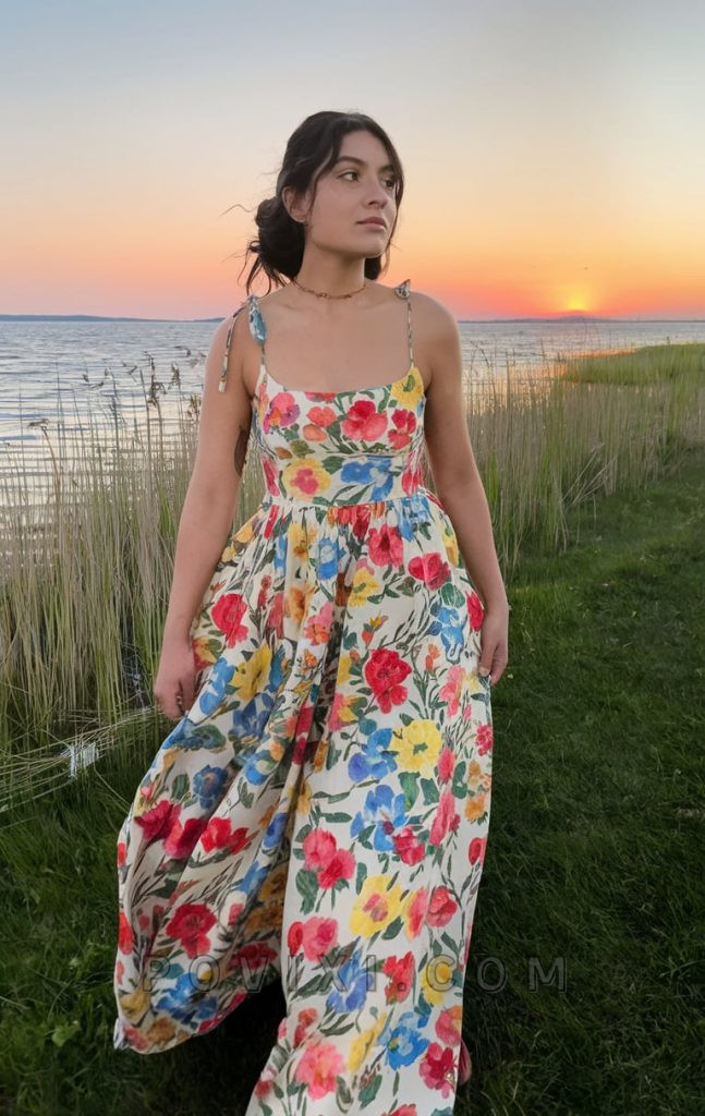 This women classy dress embraces soft pastel florals with layered ruffles that flow effortlessly. The halter neckline accentuates the shoulders, making it perfect for an outdoor garden wedding. The light and breathable fabric ensure comfort even in high summer temperatures, while the delicate accessories complement its ethereal beauty. This is a great choice for plus size and curvy women as the structured tiers elongate the frame while offering a relaxed, comfortable fit.
