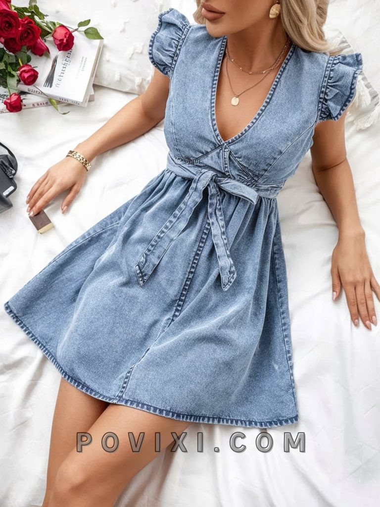 Denim dresses never go out of style, and this belted, ruffle-sleeve mini dress brings a feminine edge to classic denim. Whether you’re heading for a duo date or a shopping spree, this flirty ensemble pairs well with minimalist gold jewelry and soft waves. Add strappy sandals or espadrilles for the ultimate cute summer vibe.