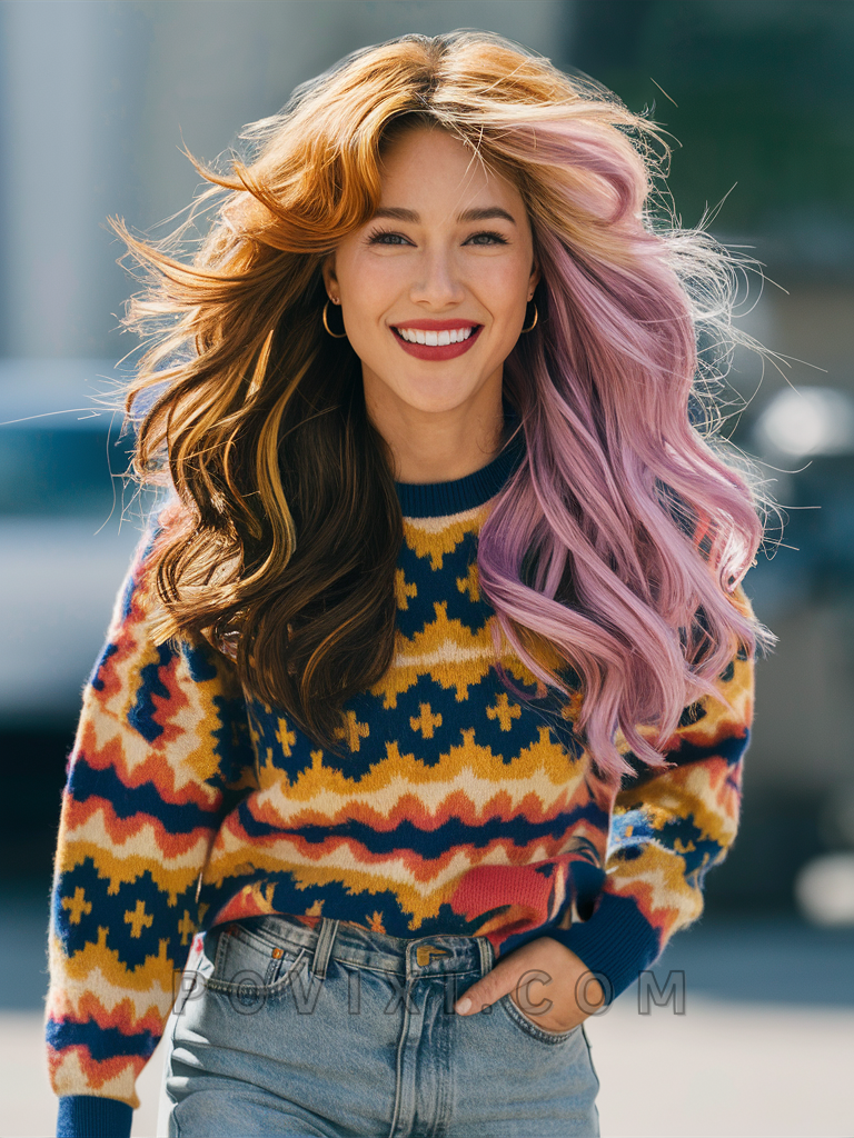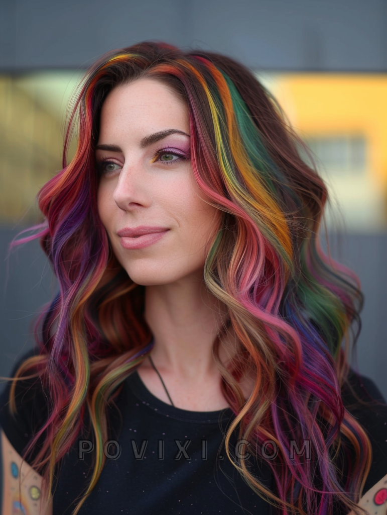 Style this look by applying temporary hair color or highlights before waving with a medium-barrel iron. Secure the waves and the color vibrancy with a color-protecting spray. To care for colored hair, incorporate a color-preserving conditioner into your routine.