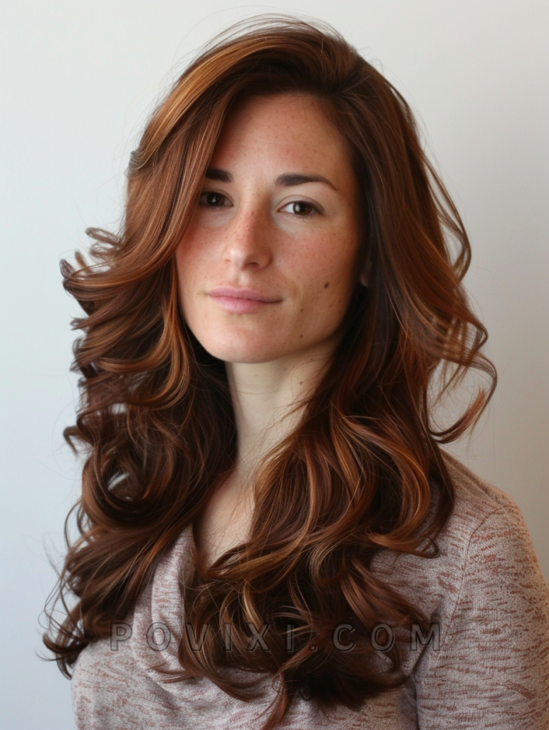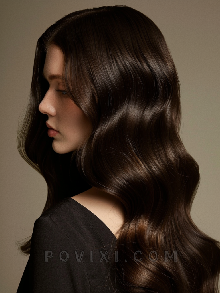 Lustrous Layered Waves flow with the natural contours of layered cuts, ideal for enhancing dimensional color treatments or highlights. Suitable for casual office days or dinner dates, this style works well across all face shapes and is particularly effective for bringing out the depth in brown eyes.