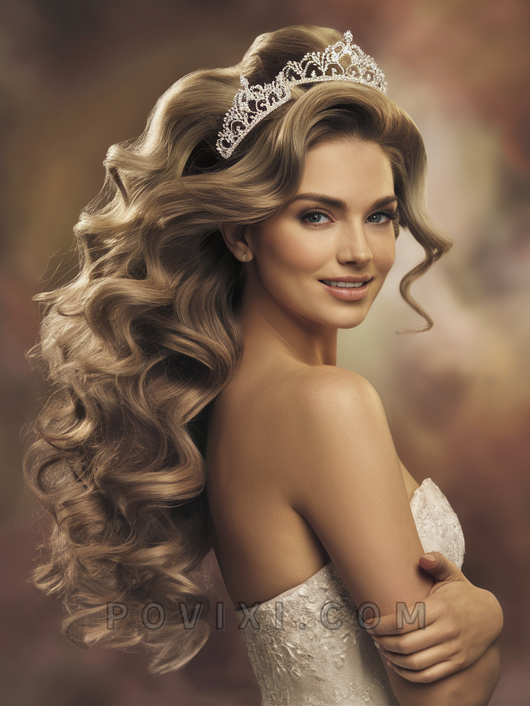 Crowned Princess Waves are regal and polished, perfect for weddings or formal receptions. They flatter longer face shapes and bring an air of sophistication to those with thin hair. This style pairs beautifully with elegant tiaras or minimalistic hair accessories to highlight blue or grey eyes.