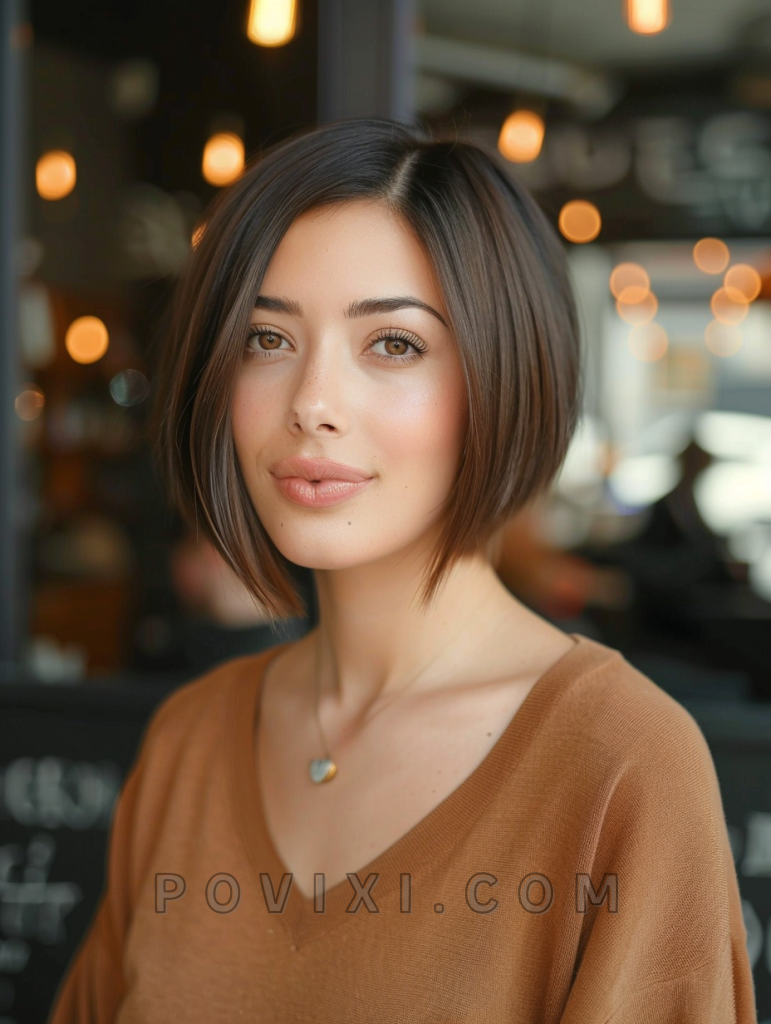 Add dimension and depth to your bob with balayage highlights. This style features a hand-painted technique that creates natural-looking highlights, adding a sun-kissed effect to your hair. It’s perfect for casual outings and semi-formal events, offering a relaxed yet polished look. The bob with balayage suits all face shapes, as the highlights can be strategically placed to enhance your features. Brown and hazel eyes are particularly complemented by the warm tones.
