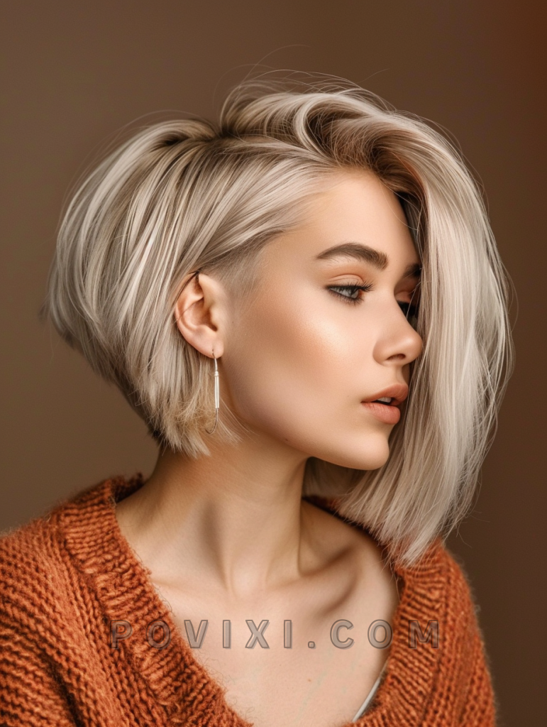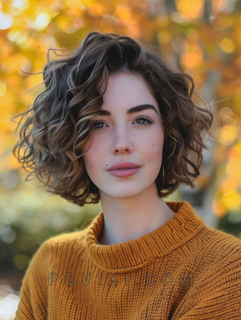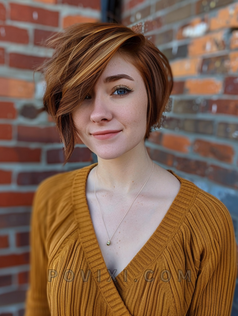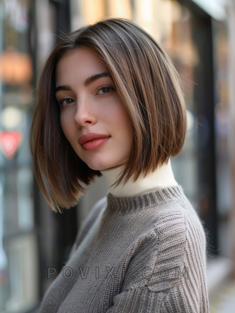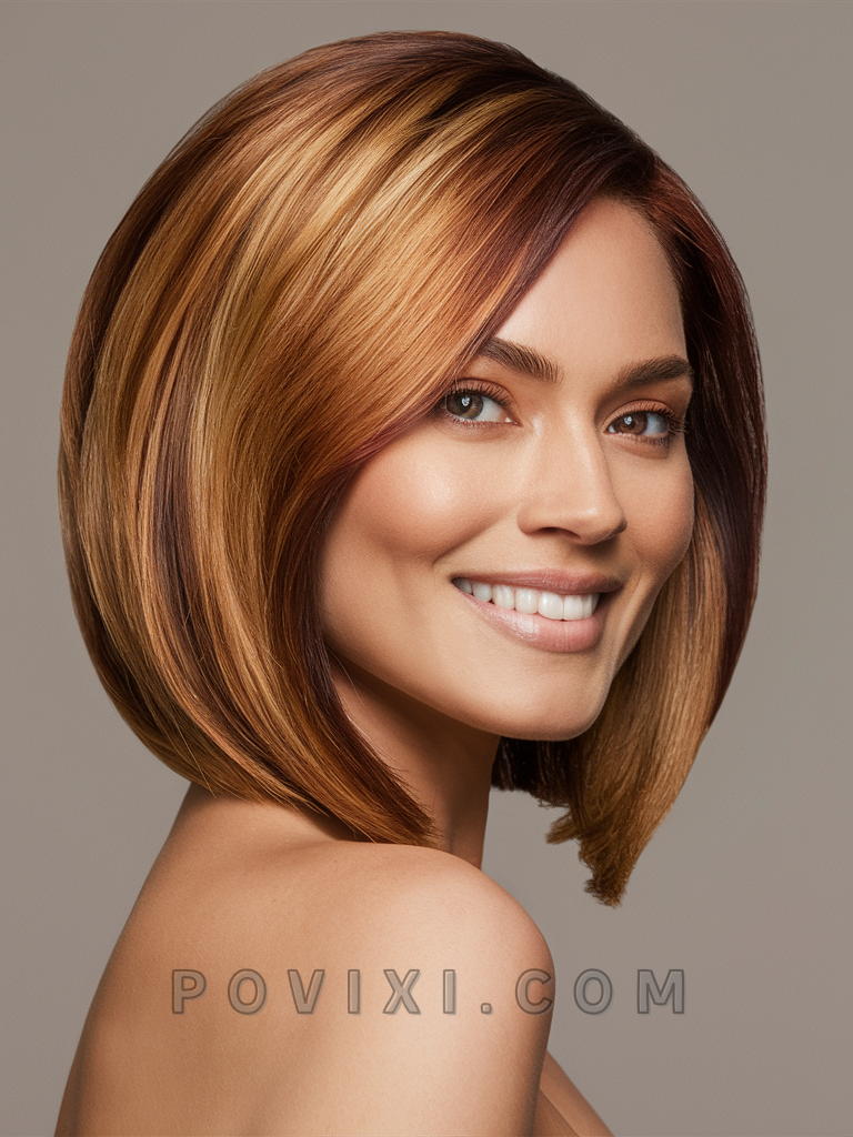 Add a seasonal touch to your hairstyle with a bob with fall highlights. This style incorporates warm, autumnal colors like caramel, auburn, and honey, creating a rich and vibrant look. It’s perfect for all occasions, from casual outings to formal events. This bob suits all face shapes, as the highlights can be strategically placed to enhance your features. Brown eyes are particularly complemented by the warm tones.