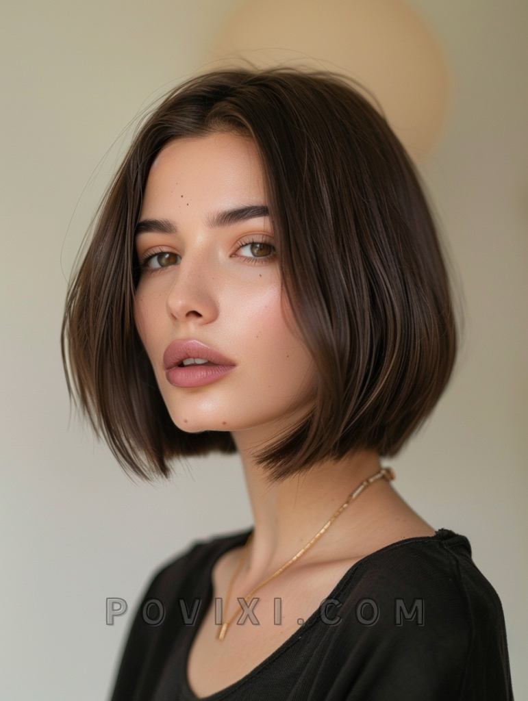 The classic blunt bob is a timeless hairstyle that never goes out of fashion. It’s characterized by its straight, even ends that create a sharp, polished look. This haircut is ideal for those with straight hair, as it showcases the hair’s natural shine and texture. It’s perfect for professional settings and evening outings alike.