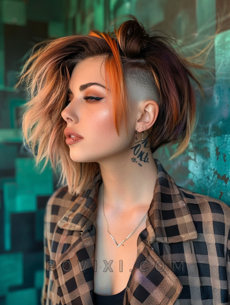 For a unique and edgy twist on the traditional bob, try a bob with undercut. This style features a shaved section underneath the longer layers of the bob, creating a bold and modern look. It’s perfect for those who want to make a statement and stand out from the crowd. The bob with undercut suits round and square face shapes best, as it adds angles and elongates the face. It pairs beautifully with light eye colors, such as blue or green.