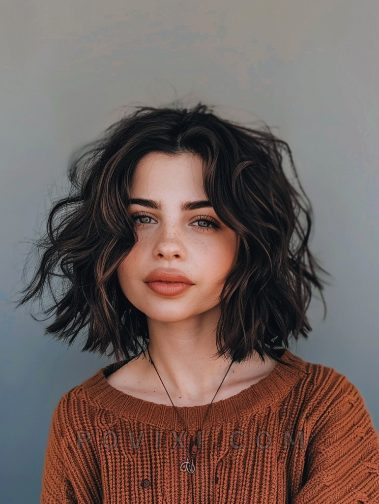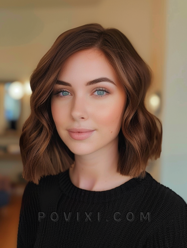 The bob with undone waves offers a relaxed, effortless look that exudes cool, casual style. This hairstyle features soft, tousled waves that look naturally undone and carefree. It’s perfect for weekend outings, brunch dates, or any casual setting where you want to look effortlessly chic. The bob with undone waves suits all face shapes, particularly oval and round faces, as it adds volume and texture. Blue and green eyes are beautifully highlighted by this playful style.