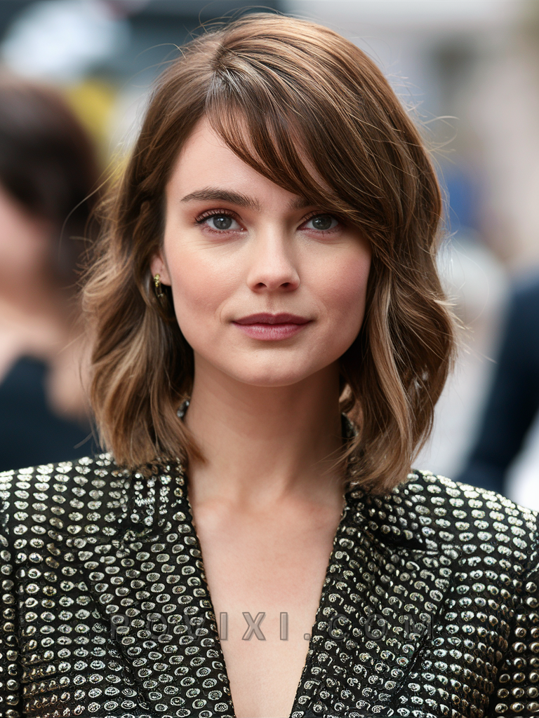 The long bob with side-swept bangs offers a softer, more feminine take on the traditional bob. This cut extends just past the shoulders, providing the versatility of longer hair with the manageability of a bob. Side-swept bangs frame the face beautifully, making it a flattering choice for all face shapes, particularly for those with longer or heart-shaped faces. This style is perfect for both day and night events, adding a touch of elegance to any look.