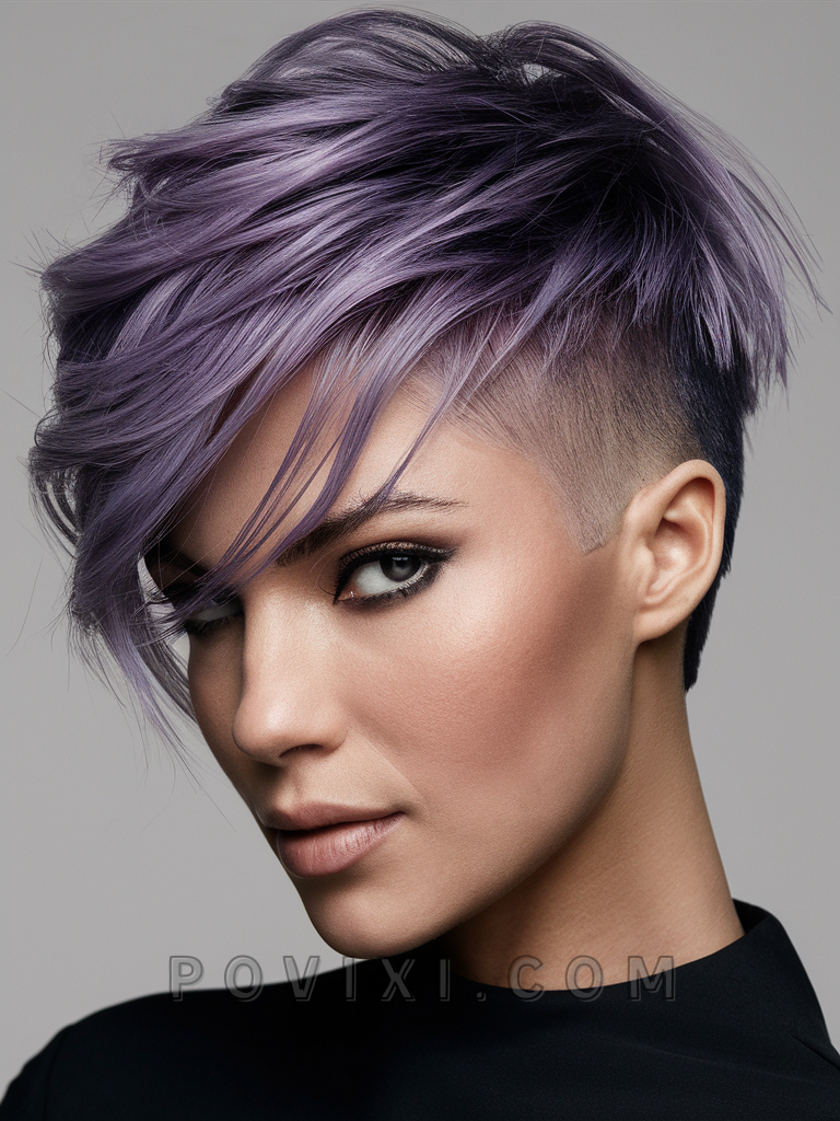 Dive into the cooler tones this fall with a smoky lavender fade on a pixie cut. This subtle yet edgy color works beautifully on those with cooler skin tones and complements particularly well with gray or blue eyes. It’s an excellent choice for artistic events or a casual chic look.