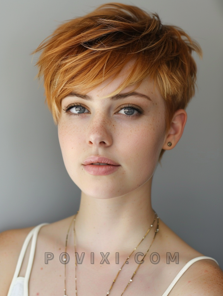 2024’s bold palette brings the fiery shades of copper to the forefront, perfect for adding warmth to your pixie cut. This color works well for square and oval face shapes, making it a versatile choice for many. The vibrant copper is particularly striking against blue and hazel eyes, turning heads wherever you go.