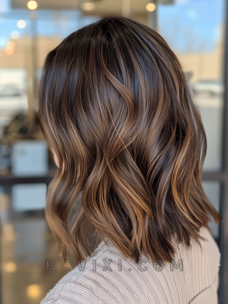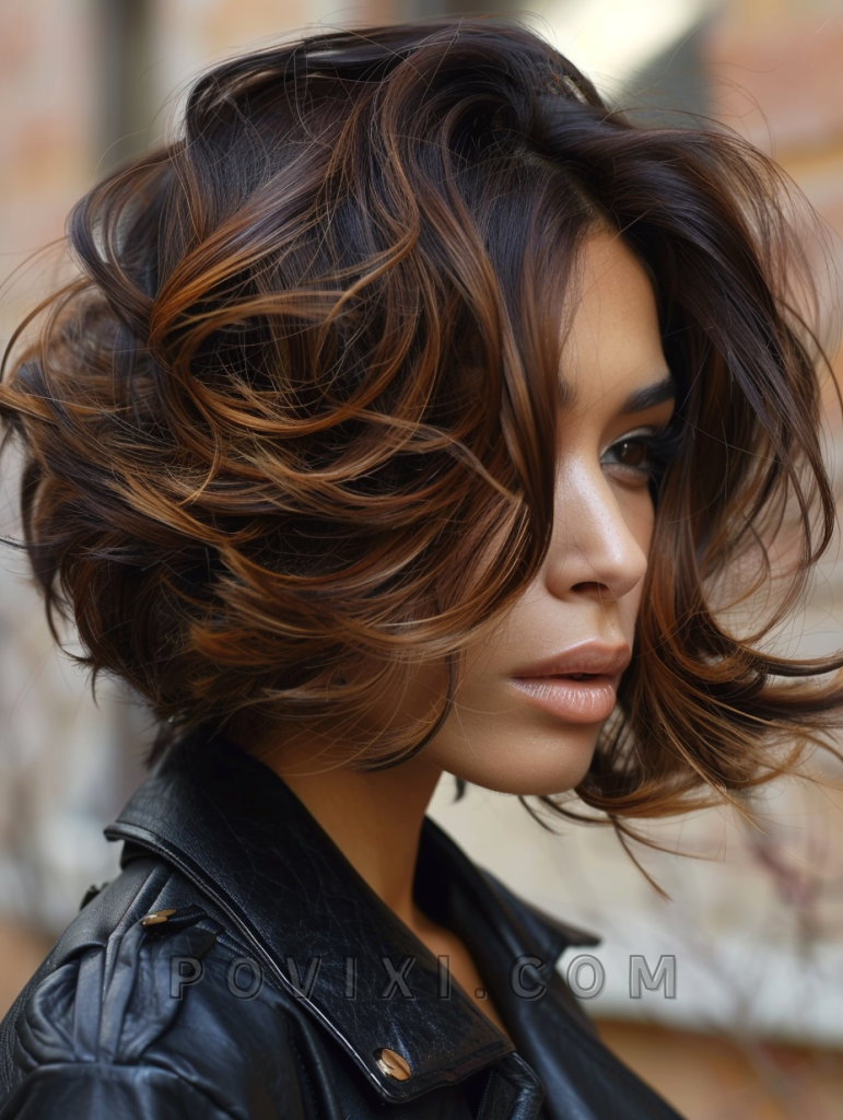For a subtle yet impactful update, try espresso roots with mocha highlights. This combination is great for adding depth to a short bob or a choppy cut. It’s particularly flattering for those with deep eye colors and any skin tone, offering a sophisticated, low-maintenance style.