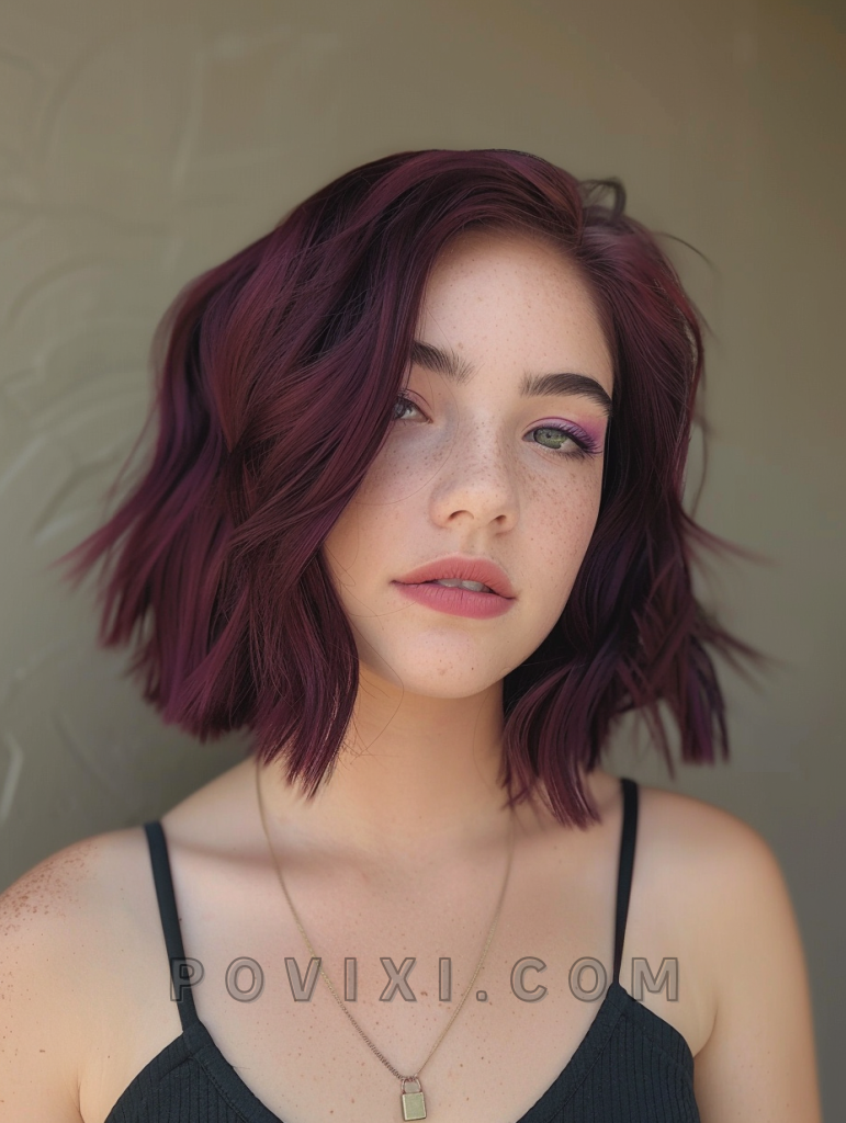 Deep burgundy is a timeless fall color that adds depth and mystery to any short hairstyle, especially textured bobs.