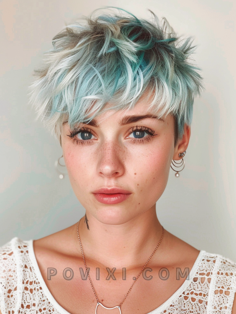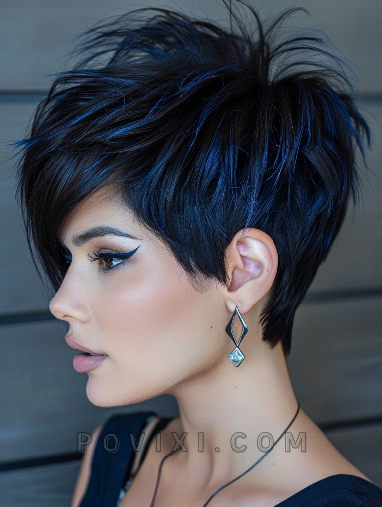 For those looking to make a bold statement, electric blue tips on a funky pixie cut can be the way to go. This look is particularly fetching for those with pale skin and works well with an oval face shape.