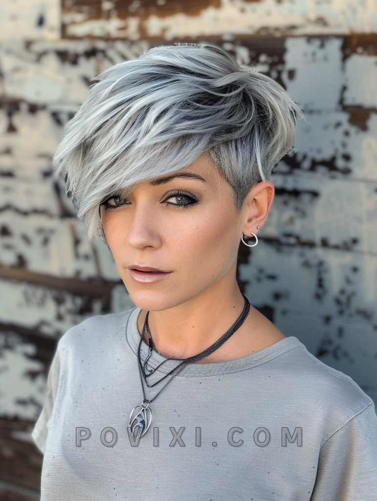 Blend silver and charcoal for a sophisticated, modern twist on the classic pixie. This color scheme is particularly flattering for those with fair to medium skin and suits almost any eye color.